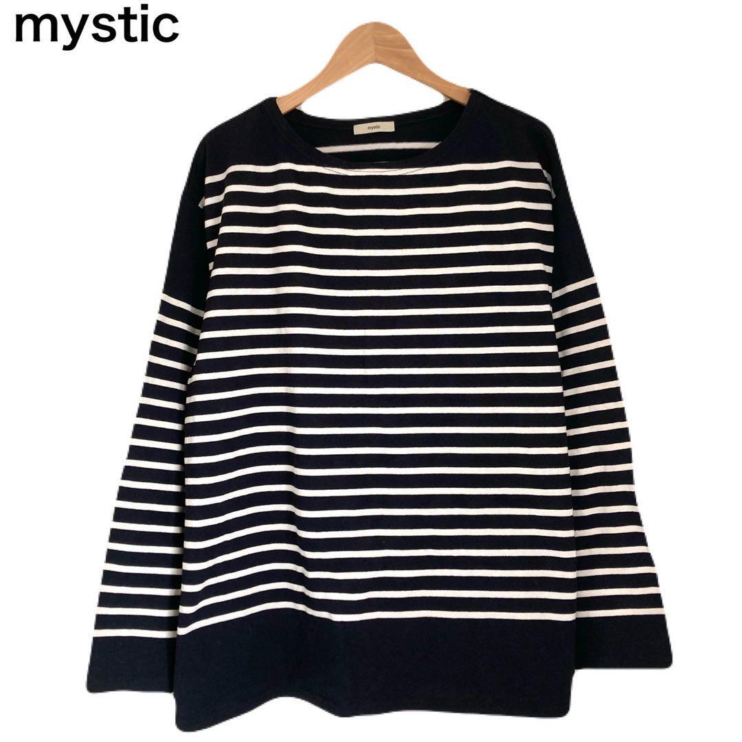 ミスティック Tシャツ ボーダー レディース ブラック 長袖 丸首 コットン