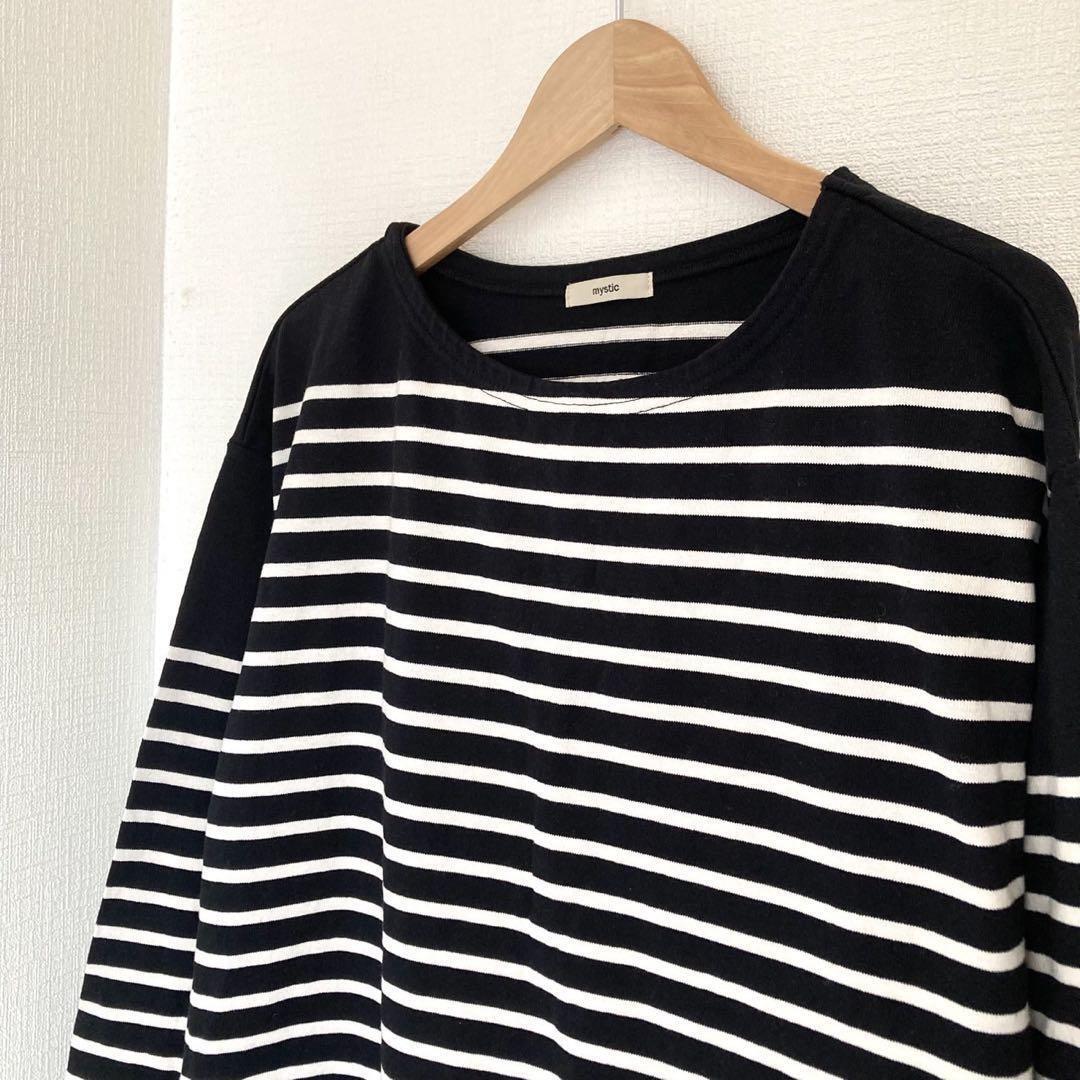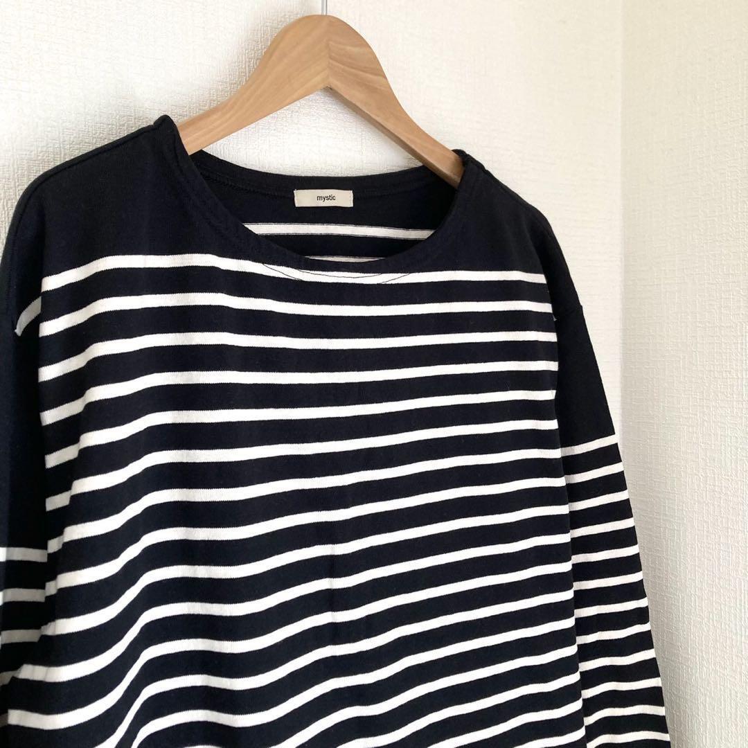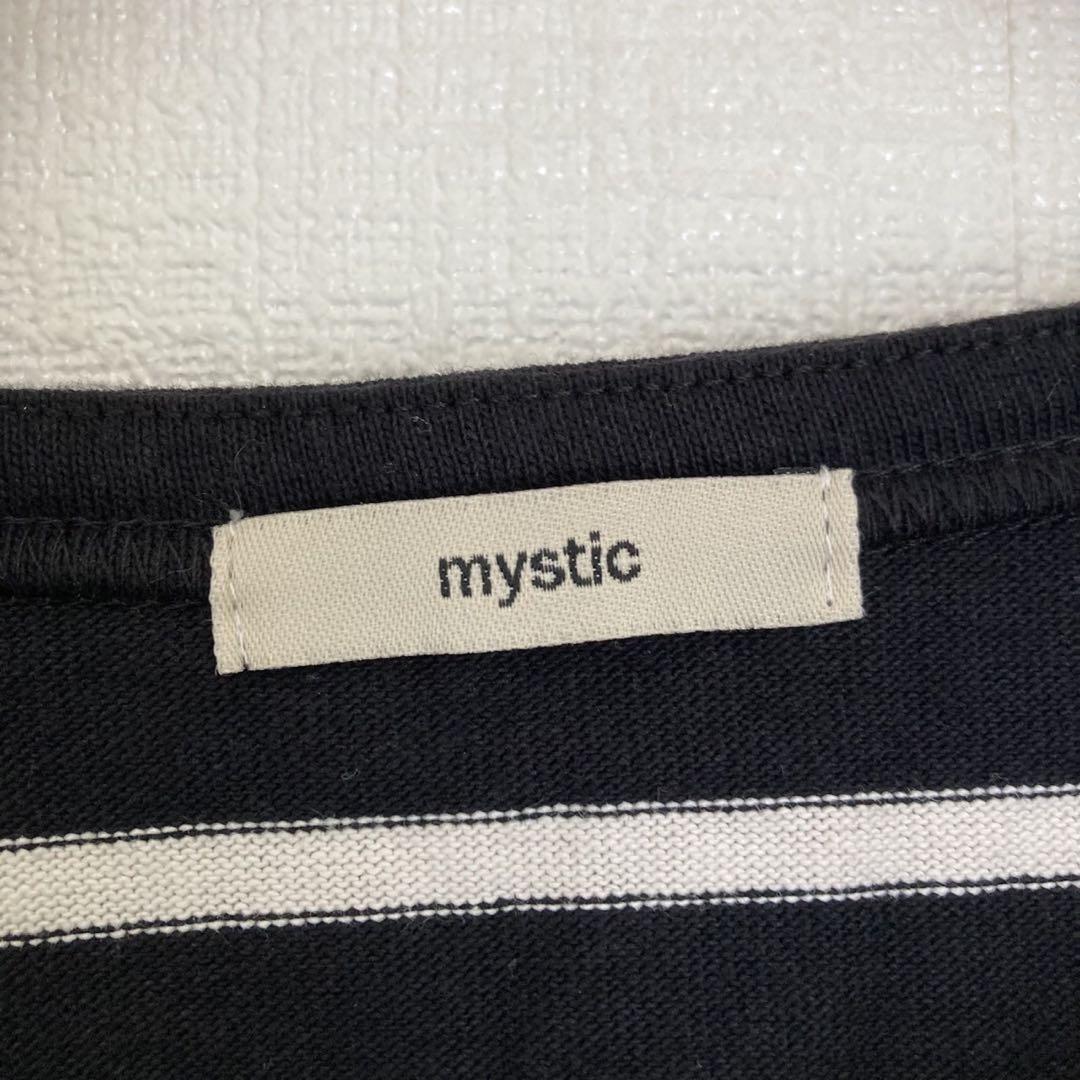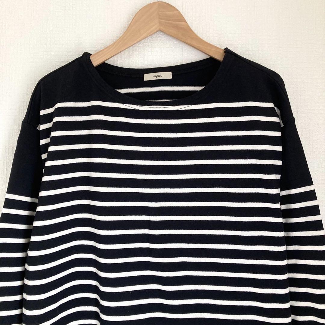 ミスティック Tシャツ ボーダー レディース ブラック 長袖 丸首 コットン