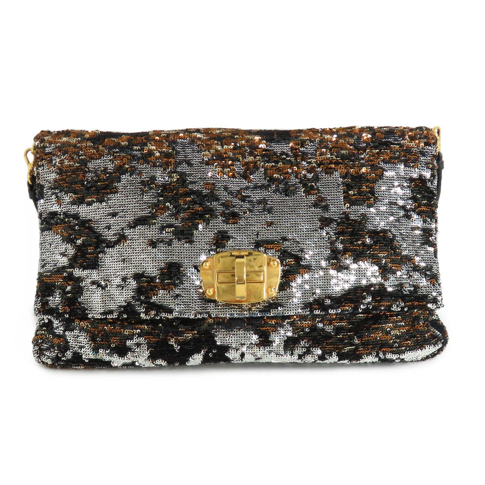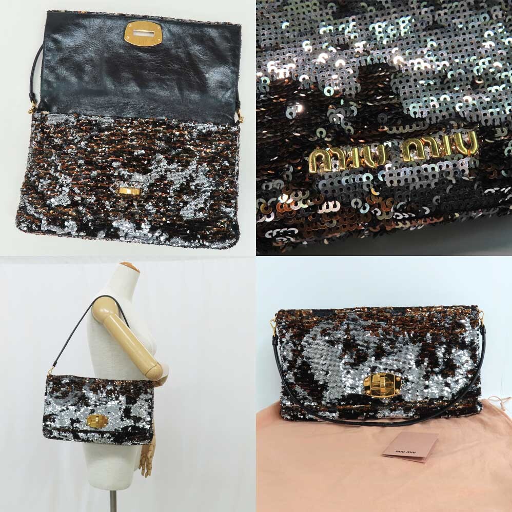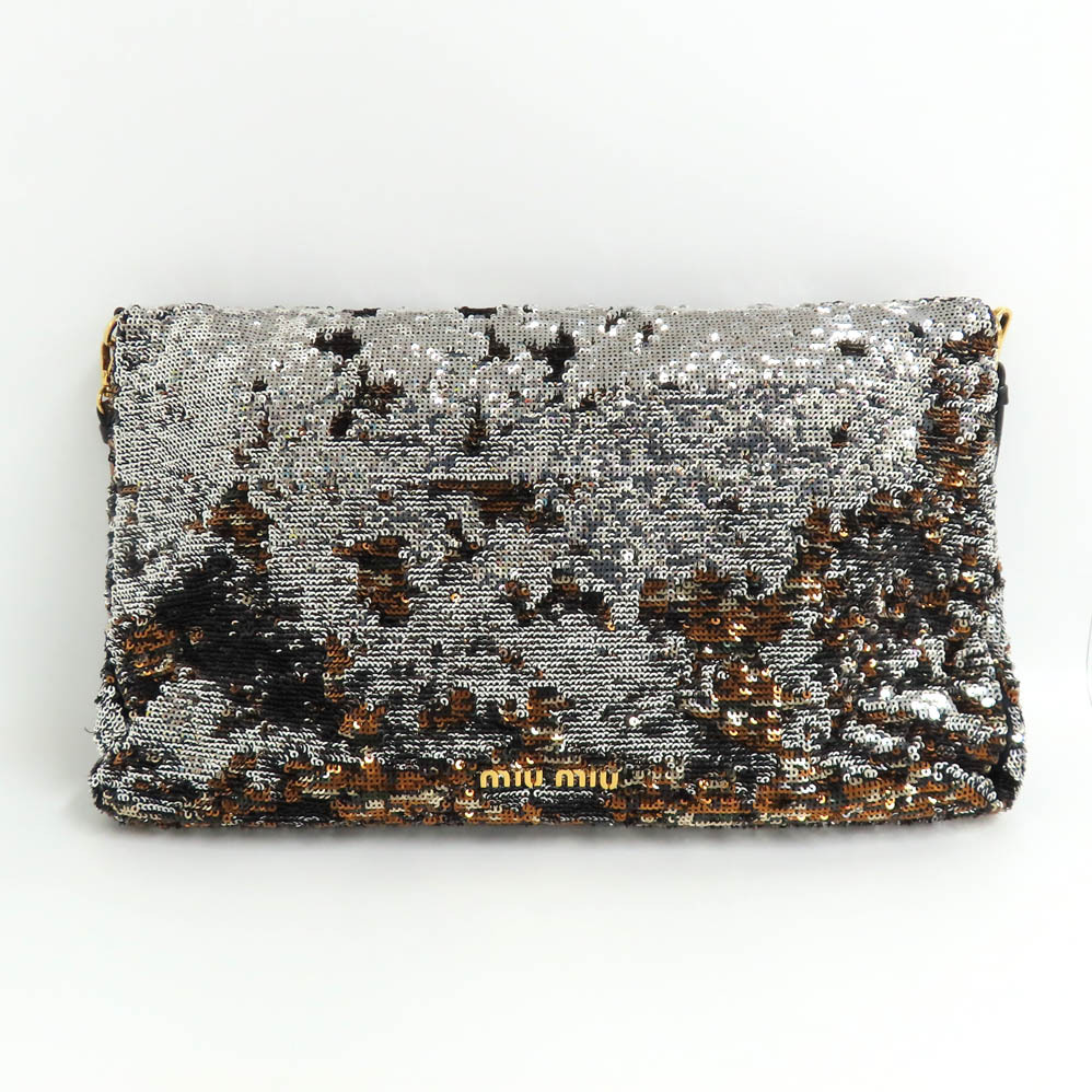 【名古屋】ミュウミュウ スパンコール クラッチバッグ ショルダーバッグ シルバー ブラウン ゴールド金具 レディース