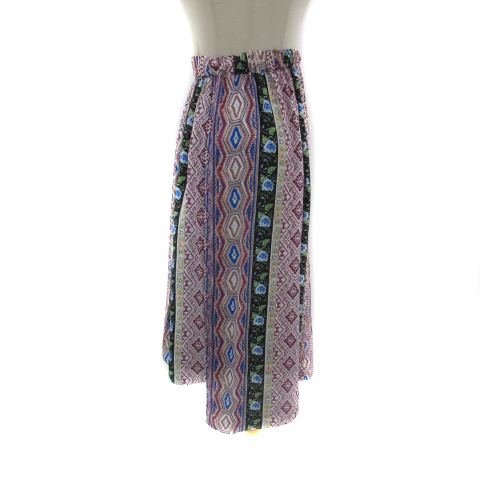 エヴリス EVRIS フレアスカート マキシ丈 ロング丈 総柄 アシンメトリー F マルチカラー エンジ /YS7 レディース