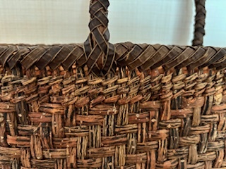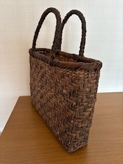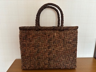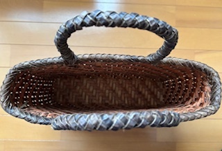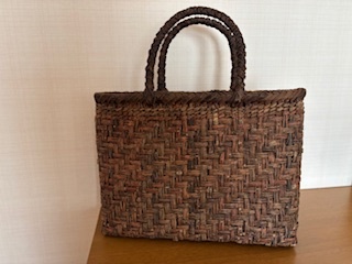 藤かごバッグです。サイズは27×37×7㎝でA4が入ります。素材はかえでで未使用です。秋田県北部の素材で作ったものです。