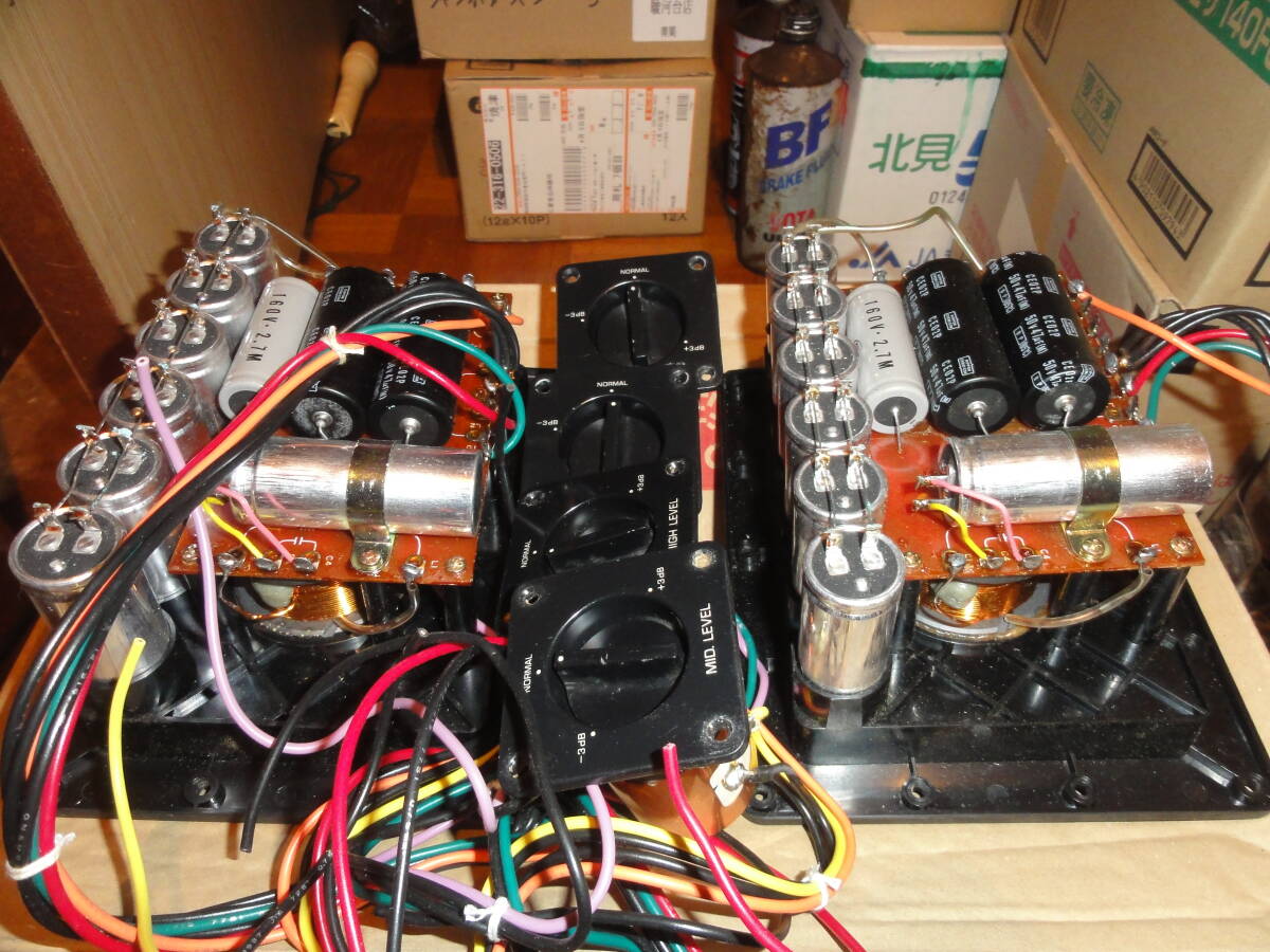 動作品から取り外しました。コンデンサー上の配線に錆や曲がりがあり、ジャンク品です。