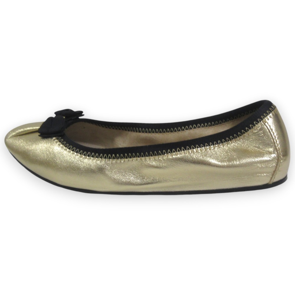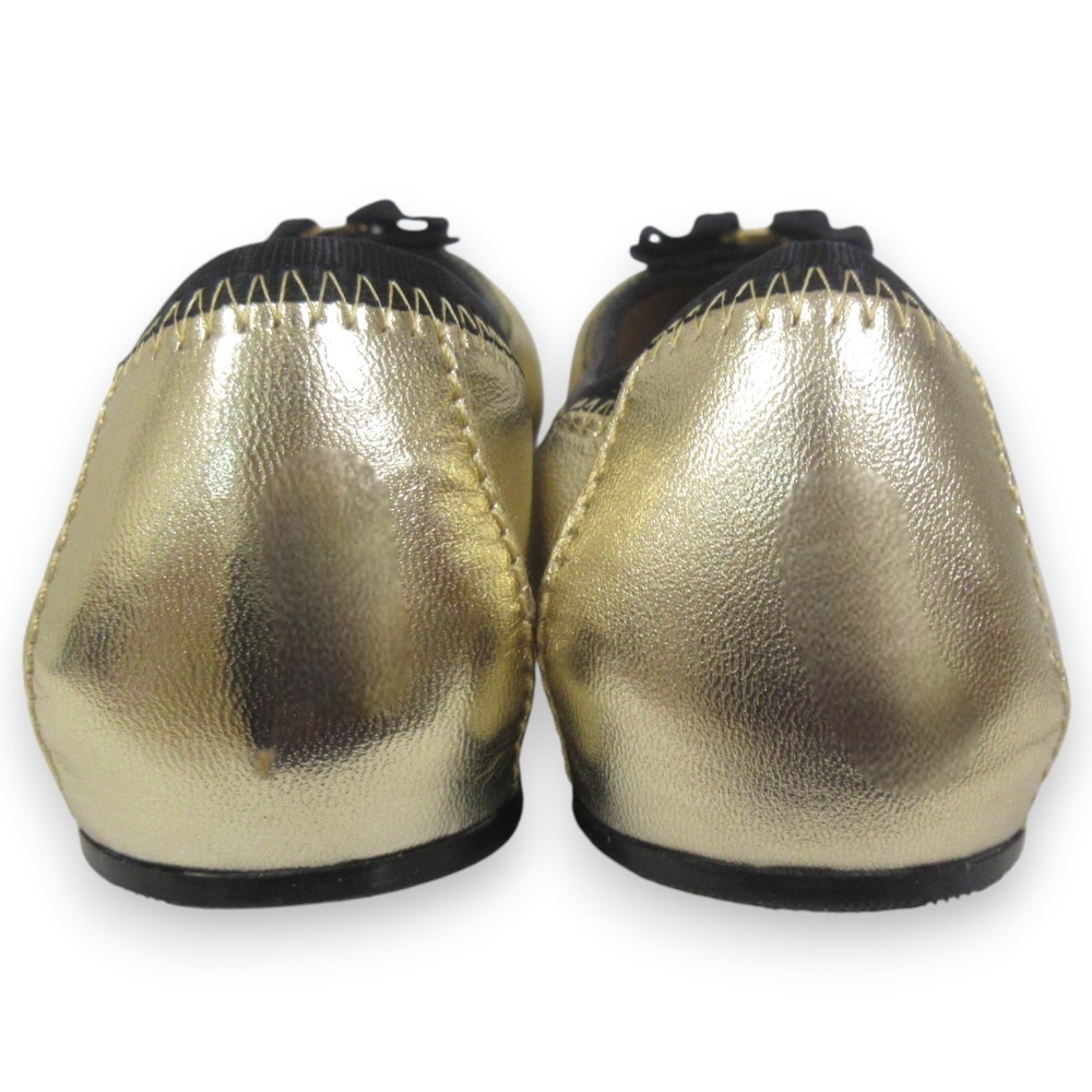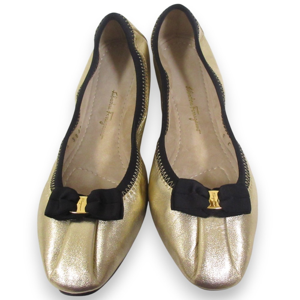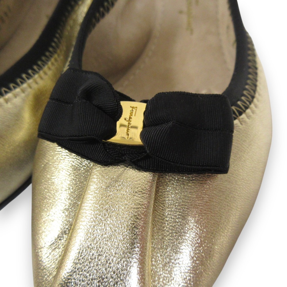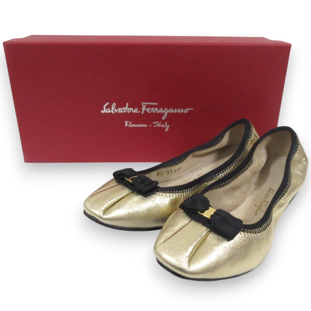 新品同様 Salvatore Ferragamo サルヴァトーレフェラガモ MY JOY レザー ヴァラリボン バレエシューズ 5C 約22.5cm ゴールドカラー
