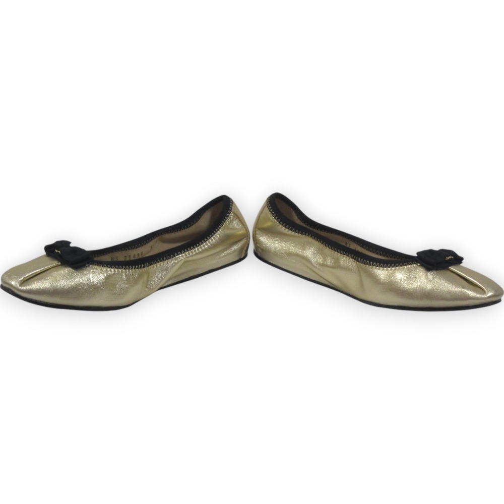 商品名:Salvatore Ferragamo サルヴァトーレフェラガモ MY JOY レザー ヴァラリボン バレエシューズ 5C 約22.5cm ゴールドカラー