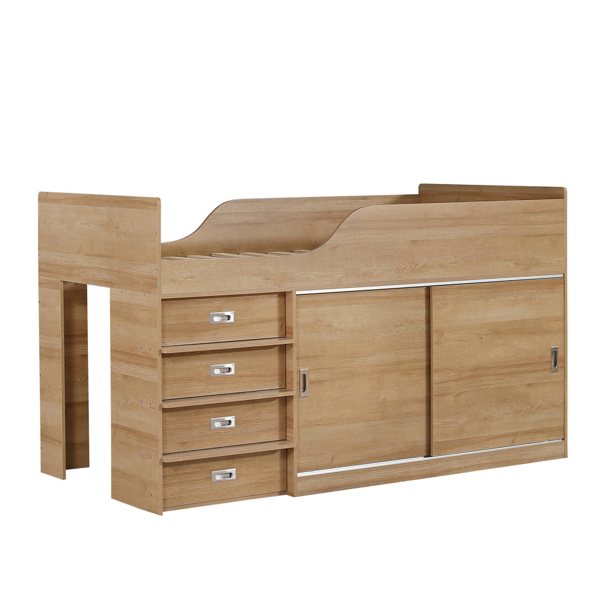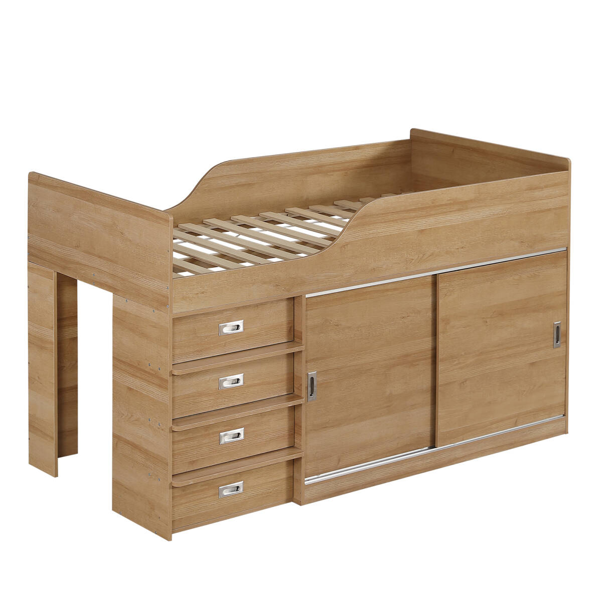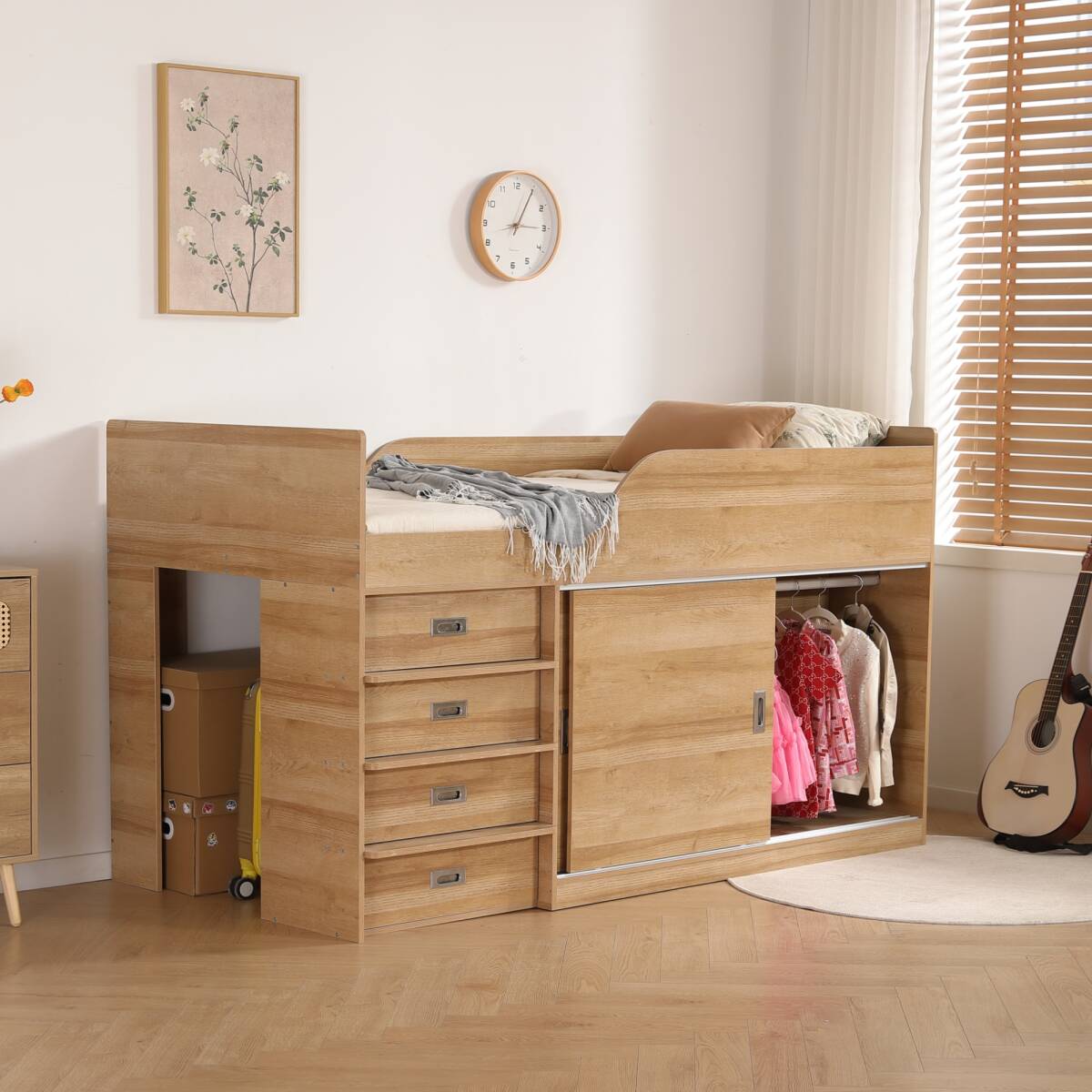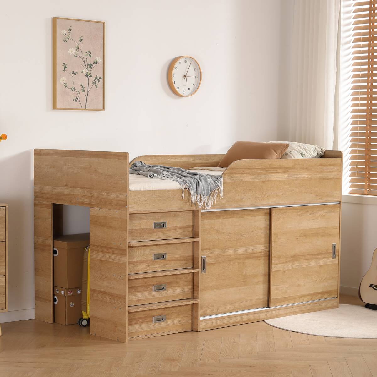 システムベッド ロフトベッド 階段付き S 木製 高さ115cm シングル ベッド ロータイプ ベッド デスク 本棚 机付き ナチュラル