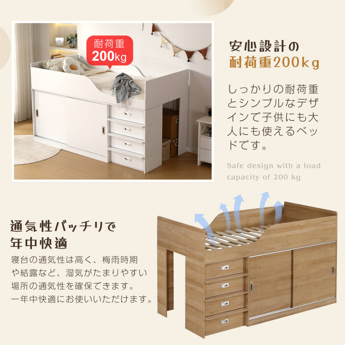 • 【お部屋に必要なモノが揃っている 】寝室に必要なものを一箇所につくる、快適な眠る、勉強、収納が叶える一台です。
