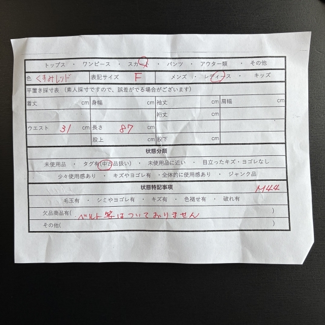 ・衣料品はたたみシワがある場合がございます。