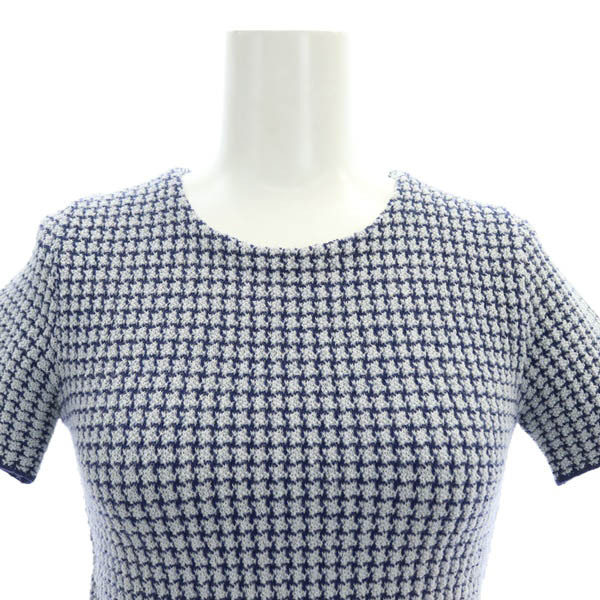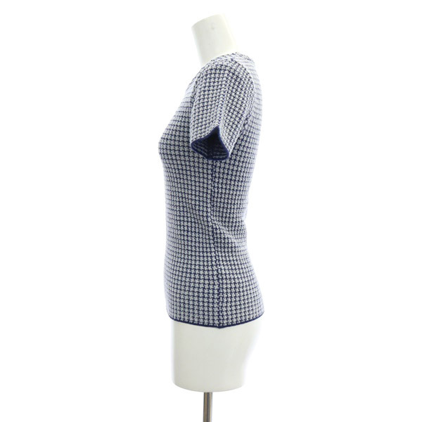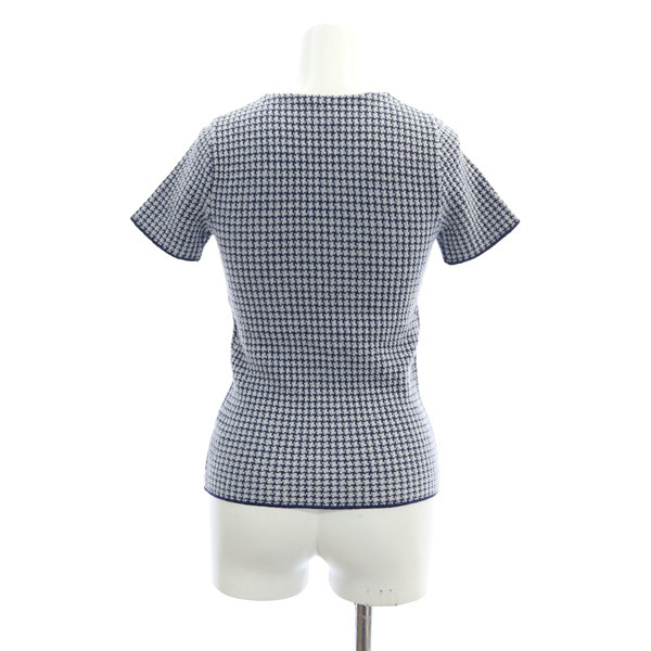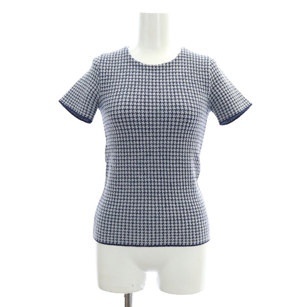 アルマーニ コレツィオーニ ARMANI COLLEZIONI 半袖ニット カットソー クルーネック 総柄 ストレッチ イタリア製 6 紺 ネイビー
