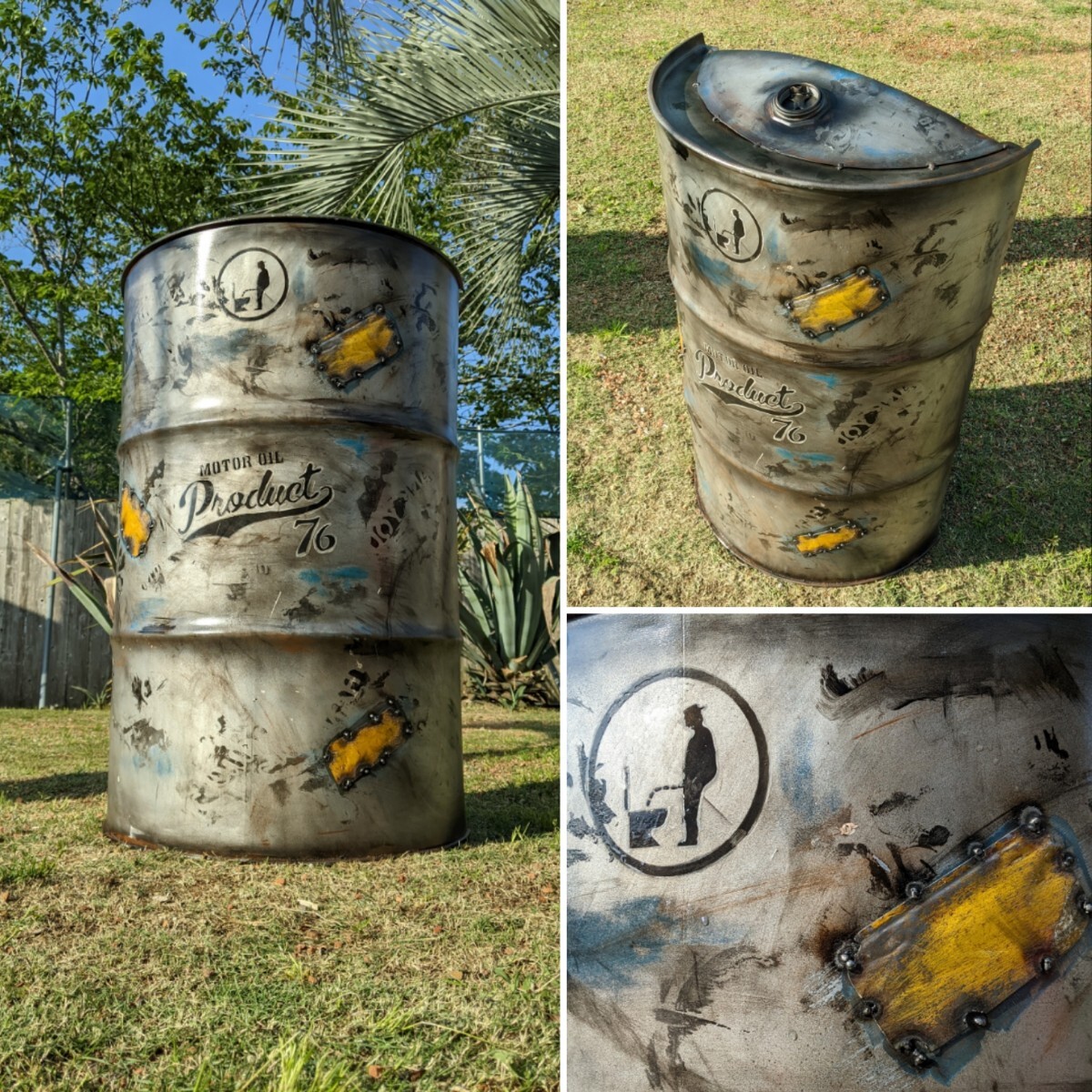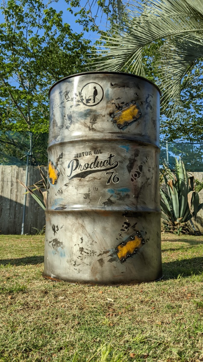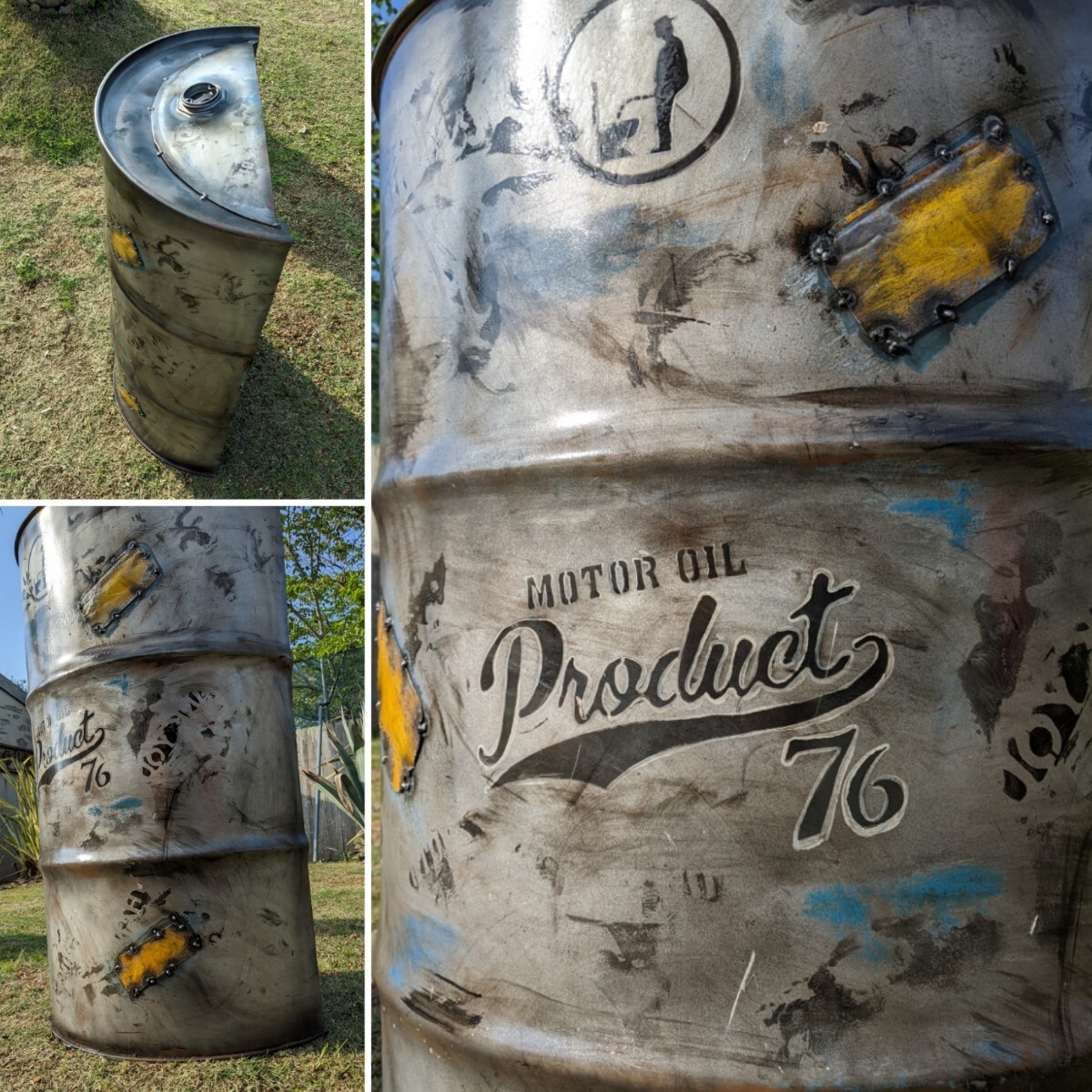 ■リサイクルドラム缶を使用し制作した 完全な加工品となり、錆、キズ、汚れ等は御座いますが、新たな製作物な為、新品記載と致します。