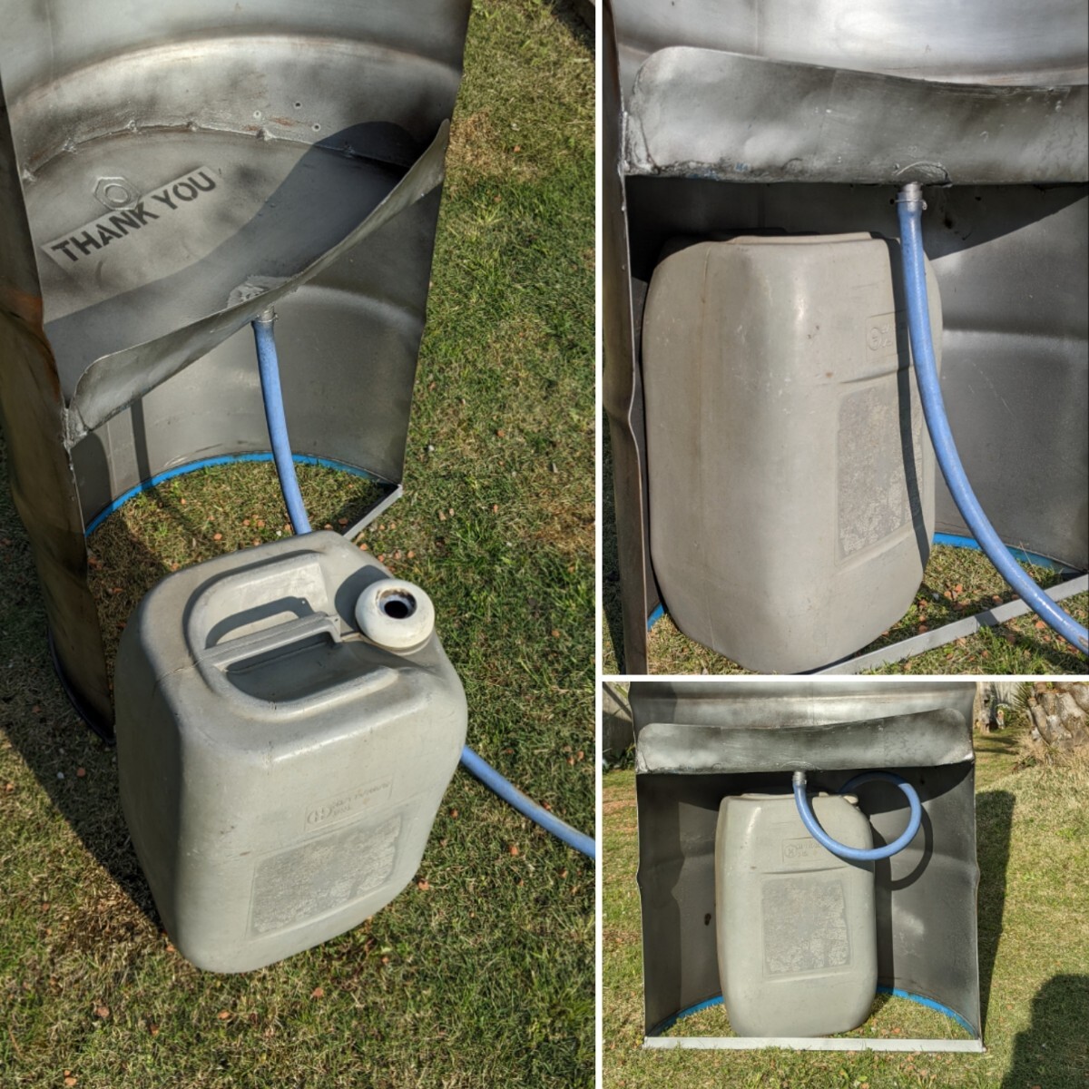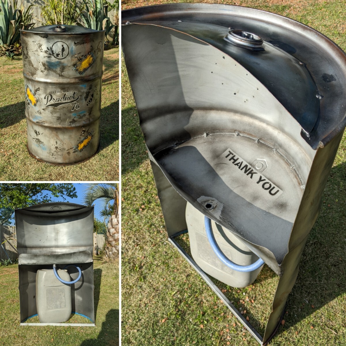 ドラム缶を縦半分にする事で、金隠しになる男性用の簡易トイレです!