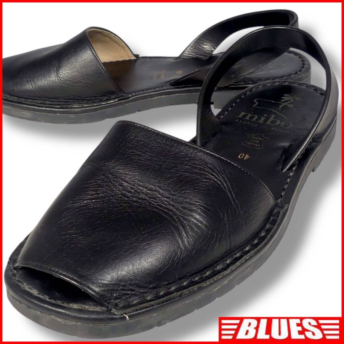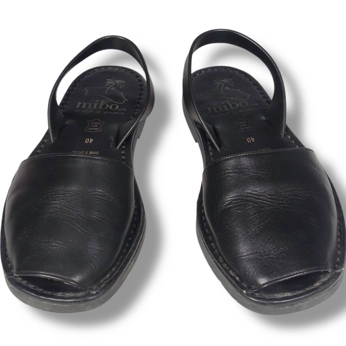 即決★mibo★26cm 黒 ブラック アバルカ サンダル 40 ミボ レザー 革靴 スペイン製 メンズ レディース