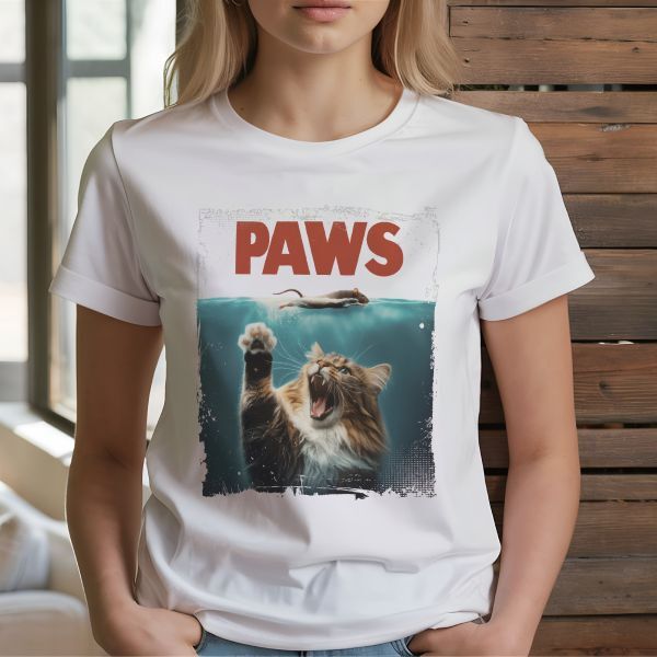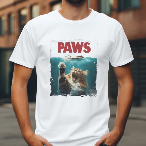映画『JWAS』の名シーンを彷彿とさせる、リアルな猫とネズミが印象的にプリントされた『PAWS・猫とネズミ』Tシャツ。