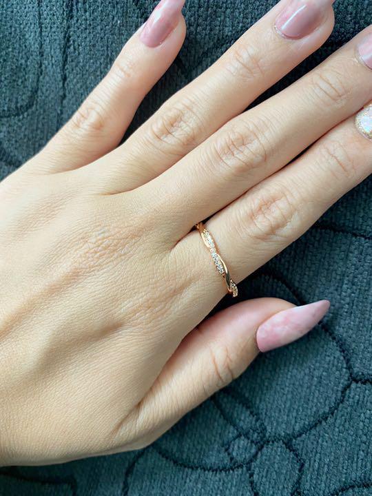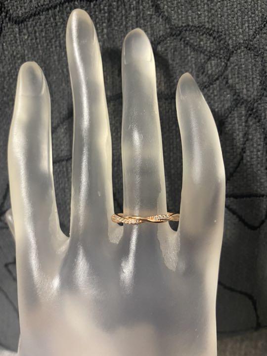 #ピンクゴールドツイスト可愛い繊細な細身ジルコニアリング