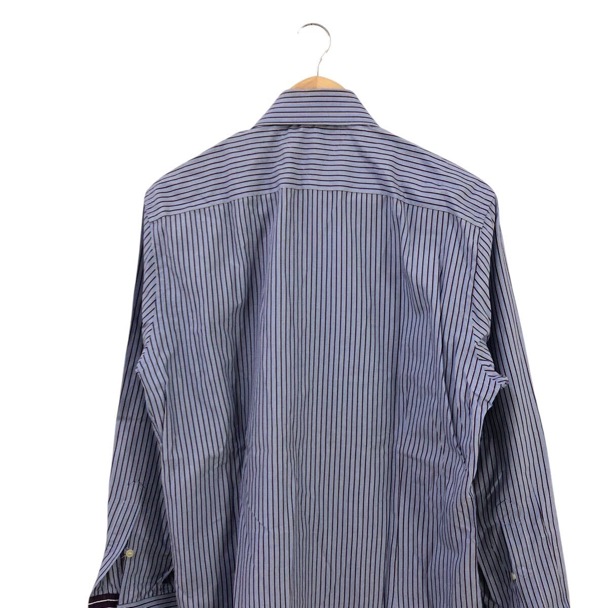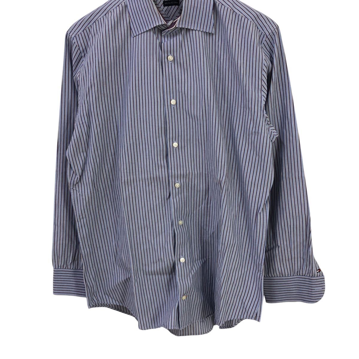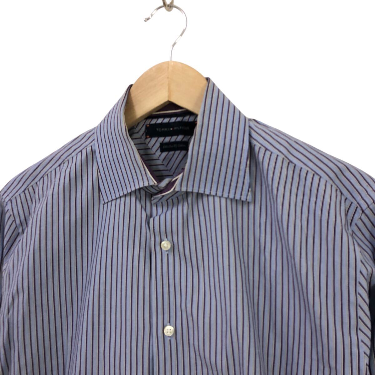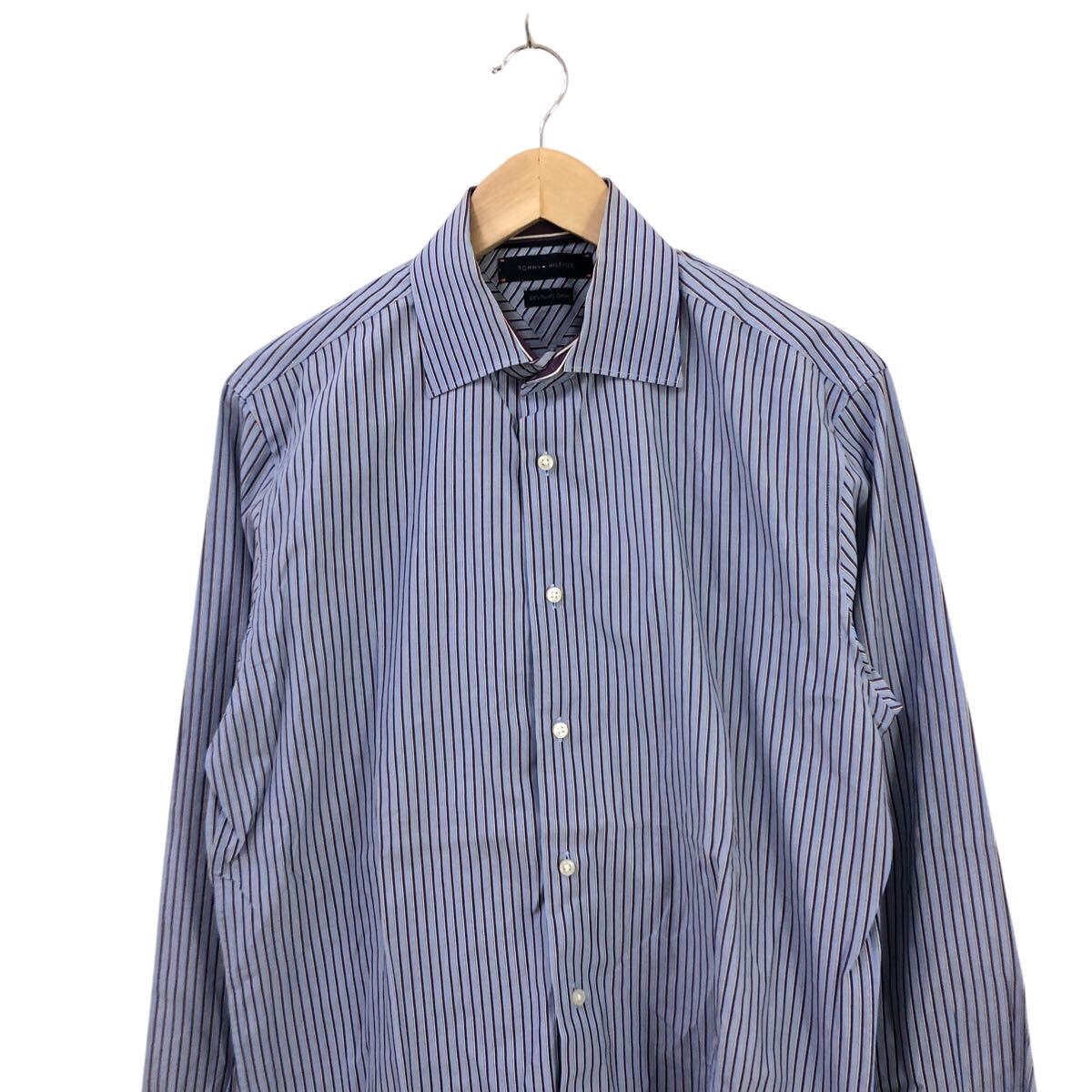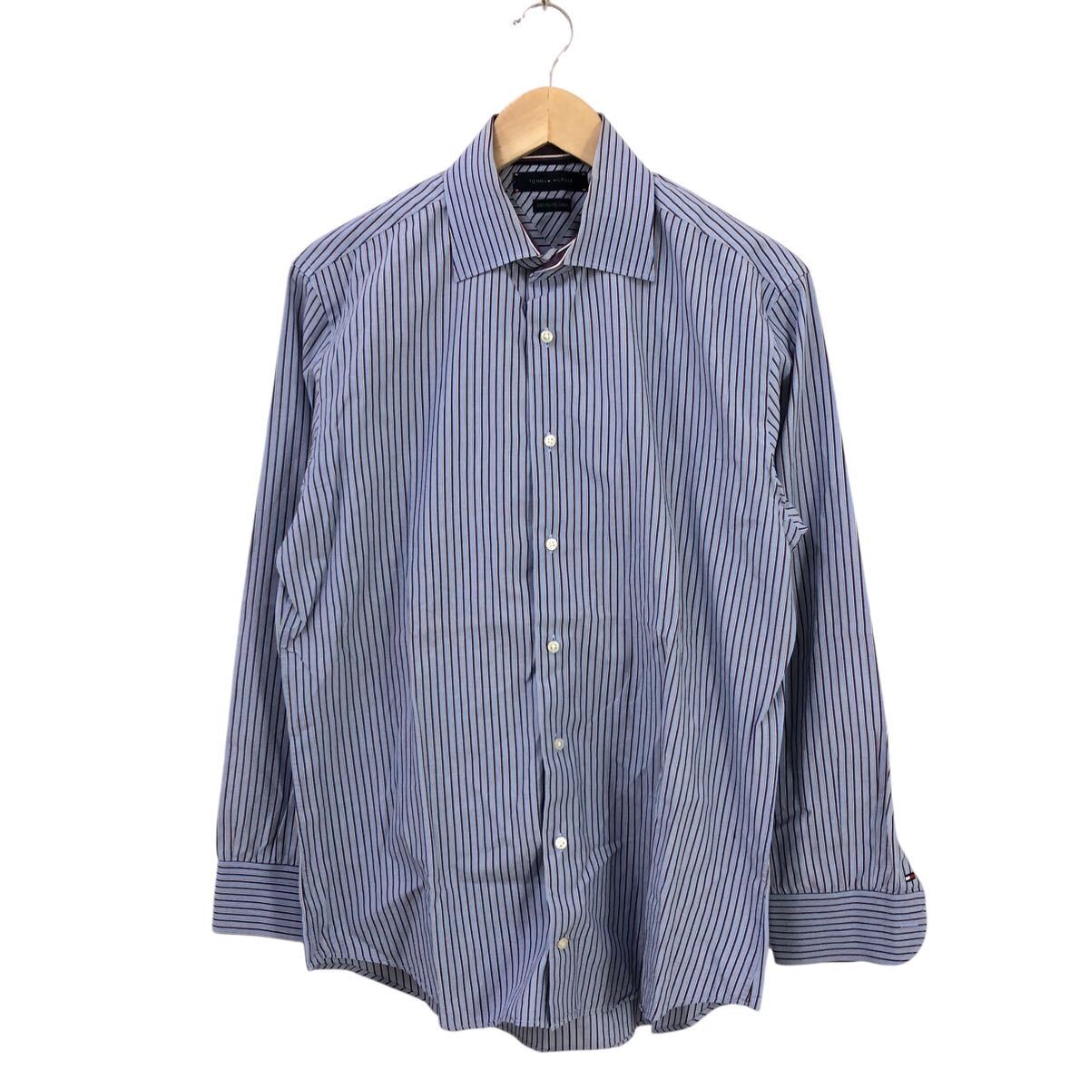 H803-70 TOMMY HILFIGER トミーヒルフィガー 100's Two Ply Cotton 長袖 ワイドカラー シャツ ブルー系 ストライプ メンズ L 良品