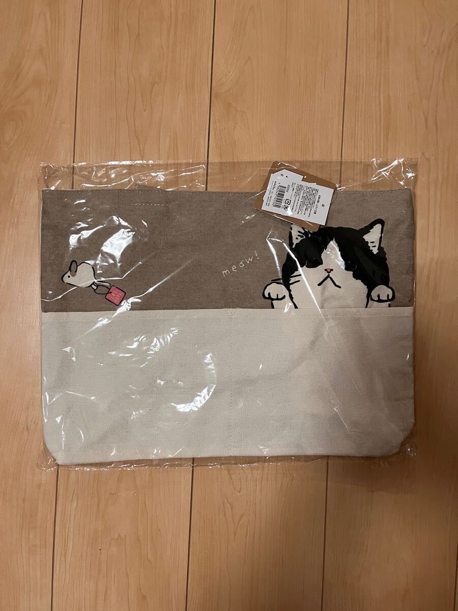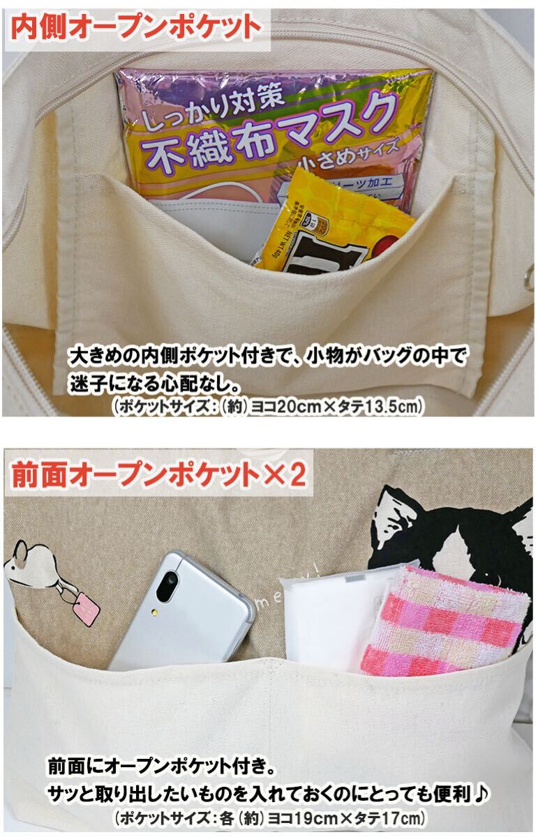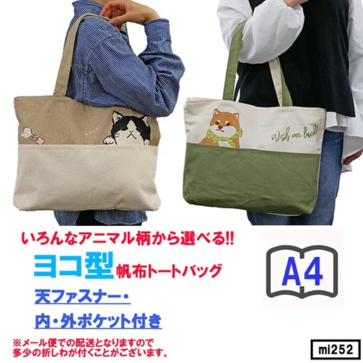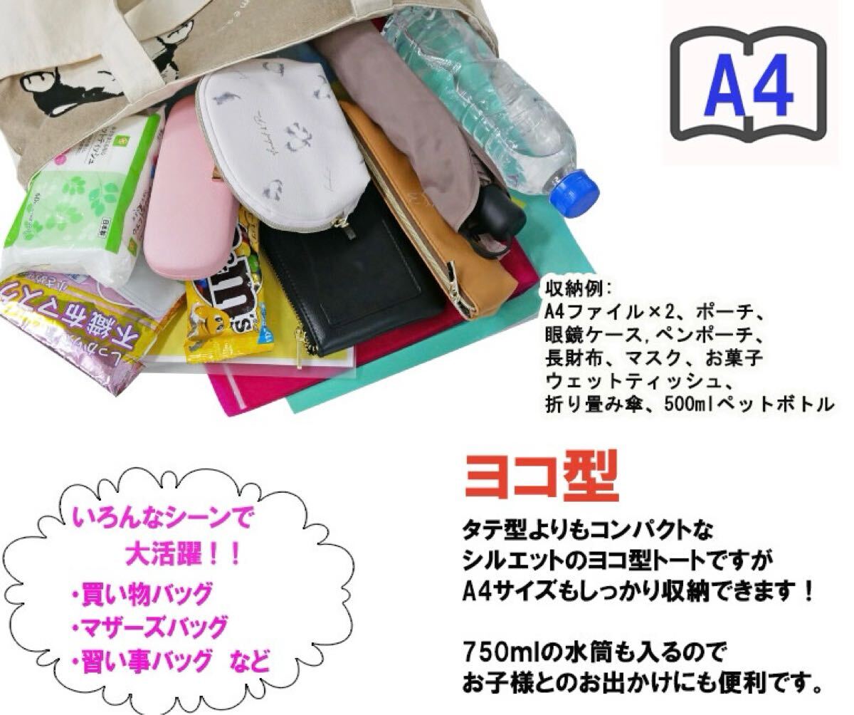 バッグ トート A4 プードル 大きい ヨコ型 帆布 キャンバス 天ファス 肩掛け 手提げ 前ポケット 猫