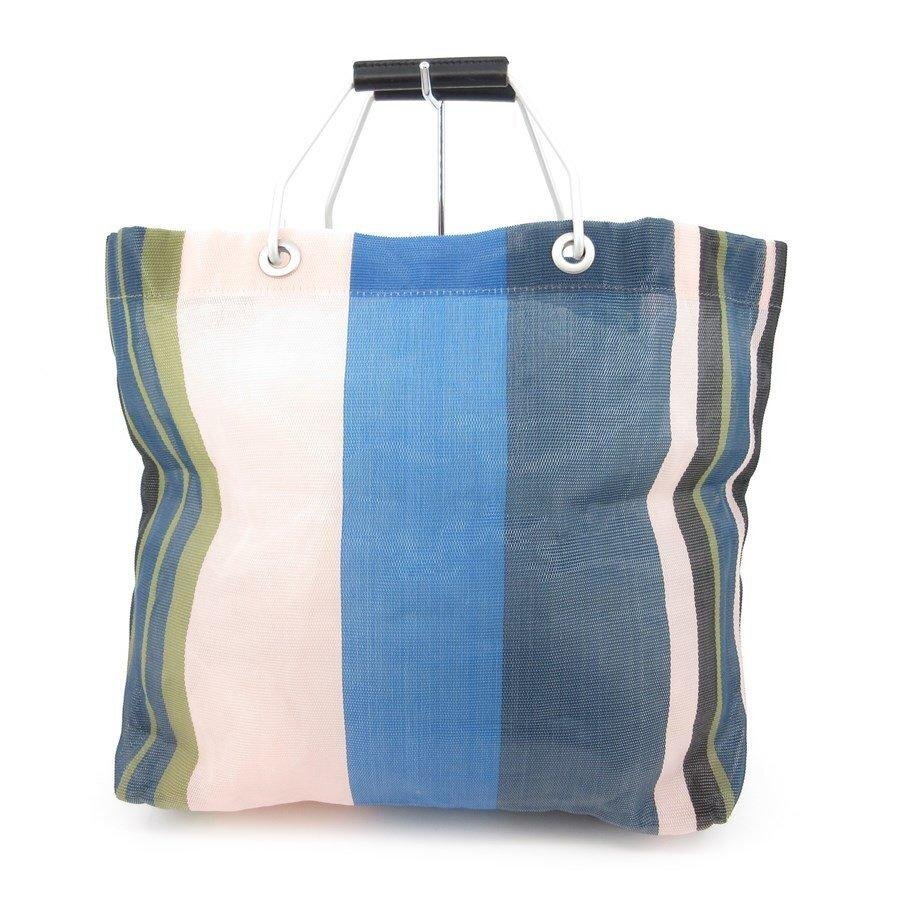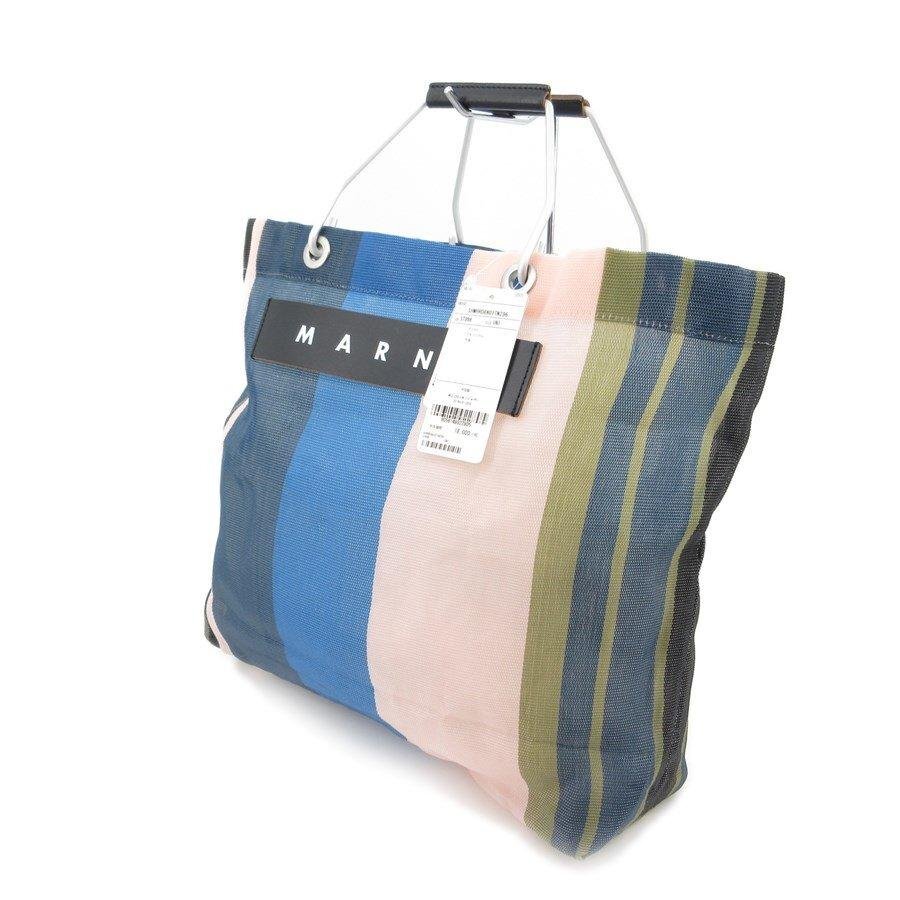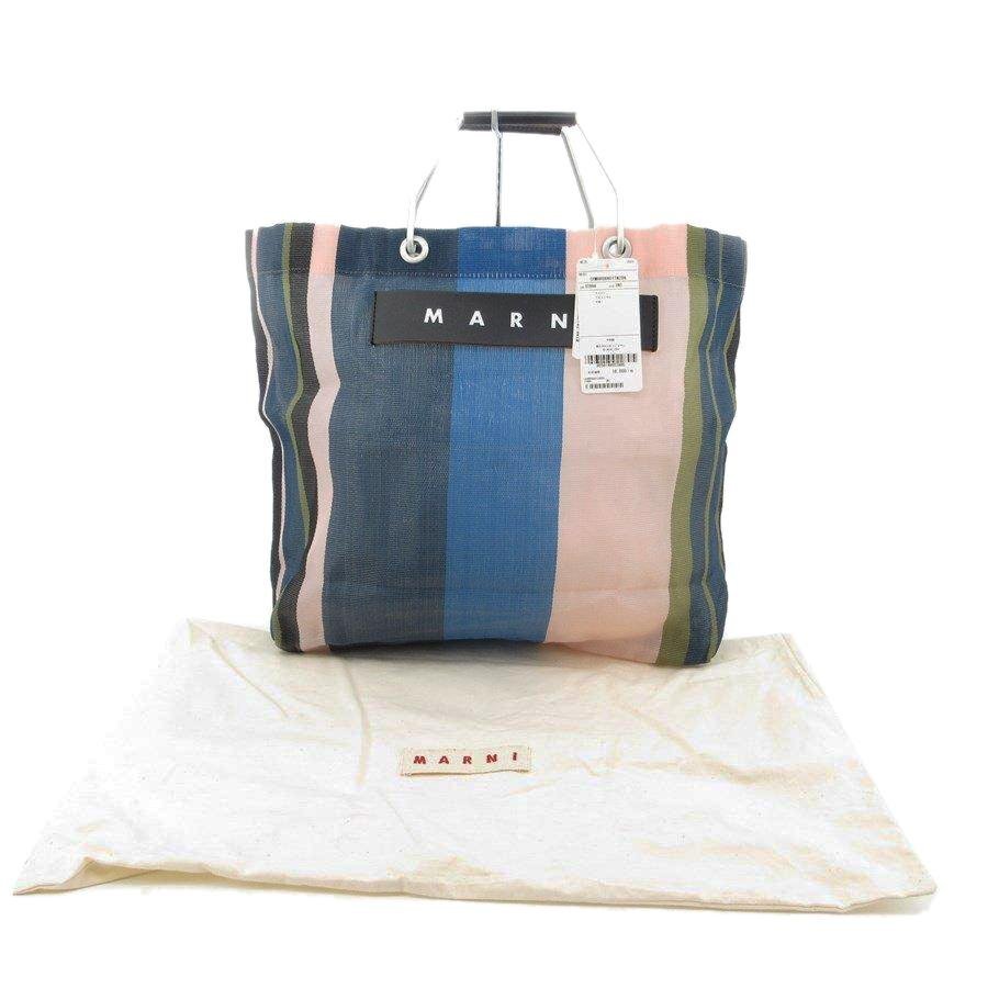 ・送料無料 超美品 マルニ MARNI トートバッグ ハンドバッグ 鞄 手提げ マルニマーケット MARNI MARKET フラワーカフェ FLOUR CAFE ストライプ柄 レディース