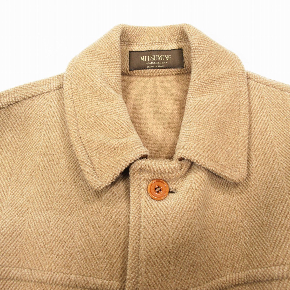 | 【ミツミネ 三峰 MITSUMINE Moorbrook ウール コート ヘリンボーン ステンカラー ジャケット ブルゾン L ベージュ ur93】 | |