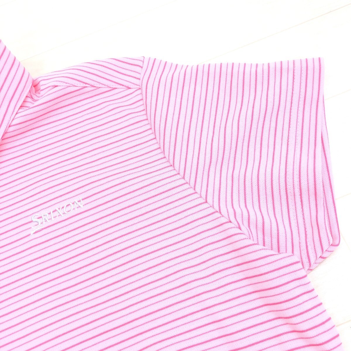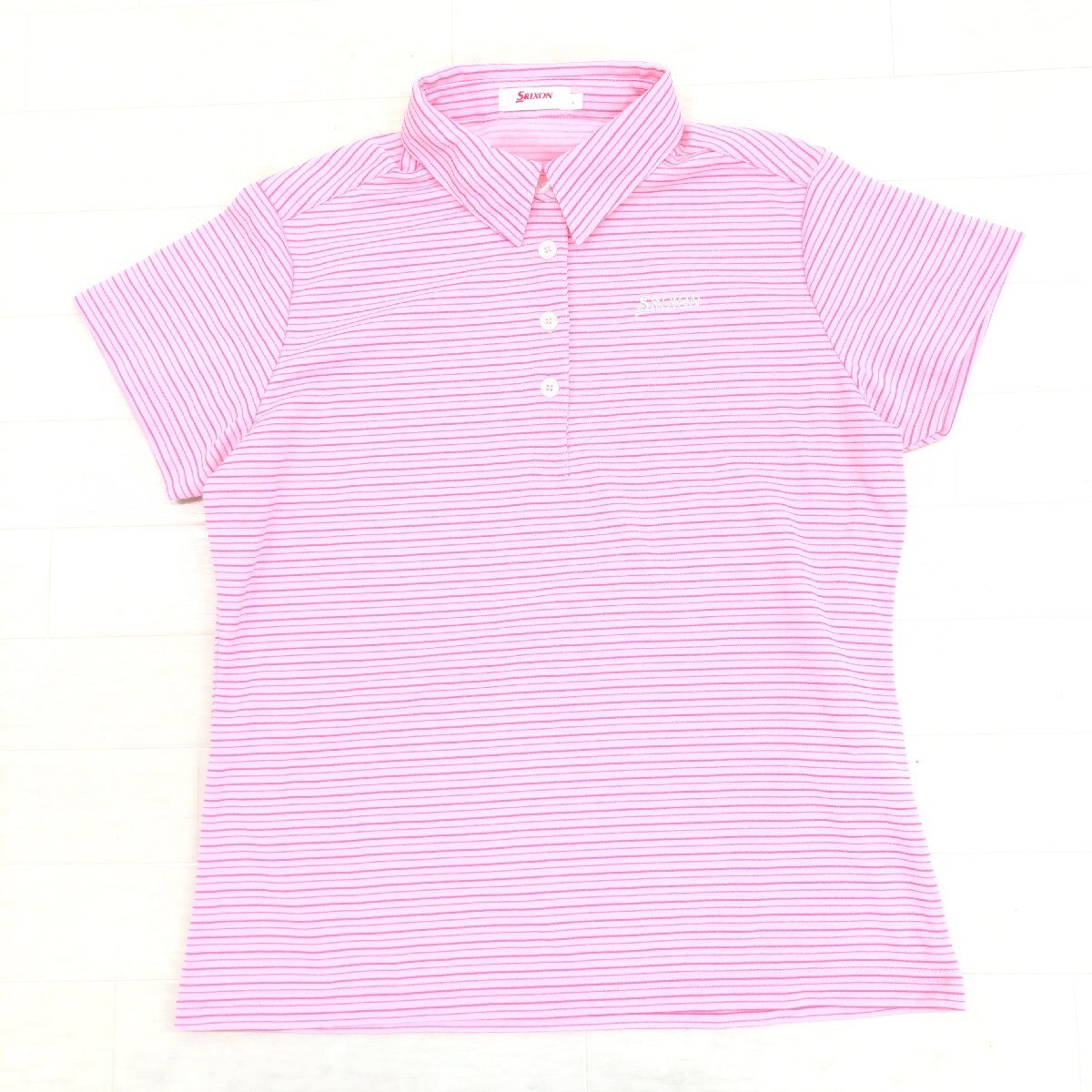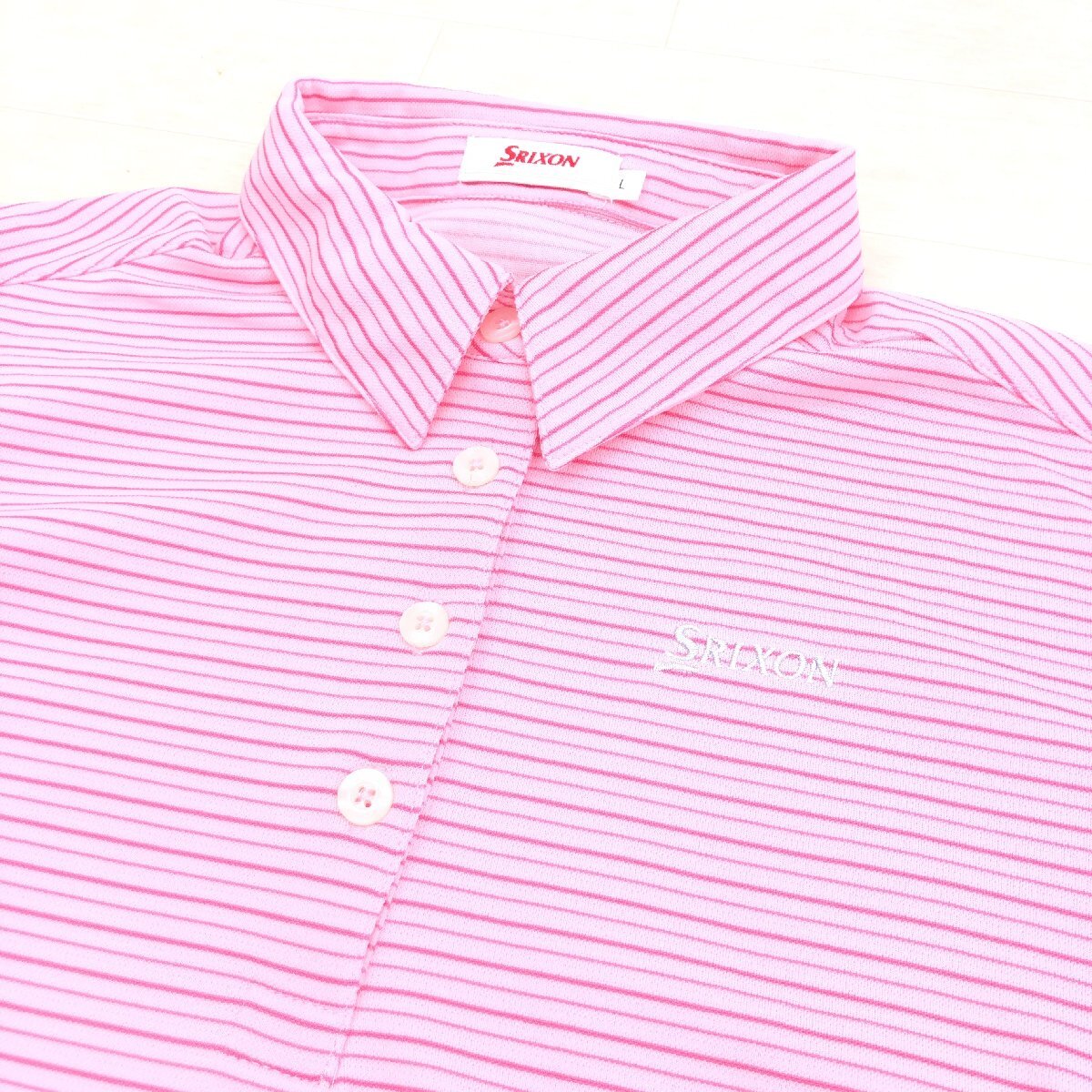 美品 SRIXON スリクソン 定価7,500円 吸水速乾 ドライ ボーダー ゴルフシャツ L ピンク ポロシャツ カットソー Tシャツ レディース 女性用