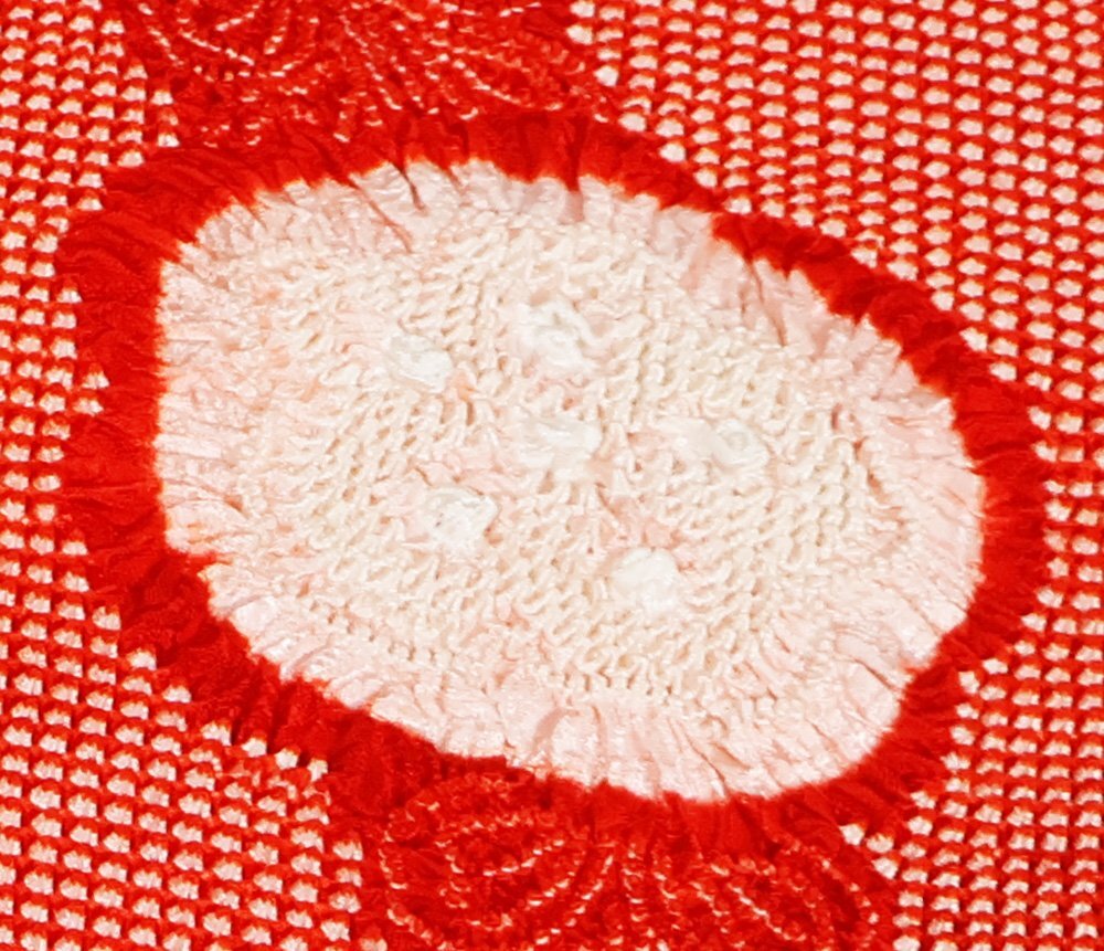 | 振袖用 絞り帯揚げ 総絞り赤 梅花 暈し | |
