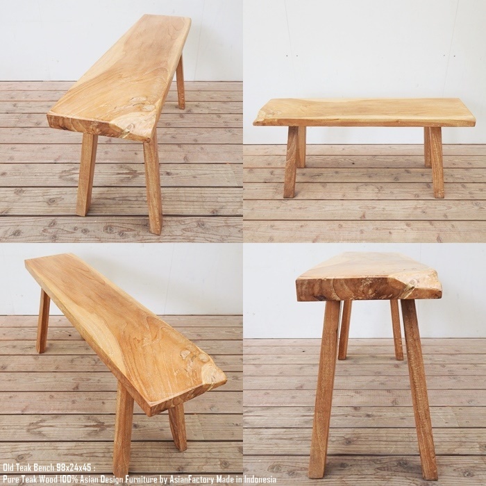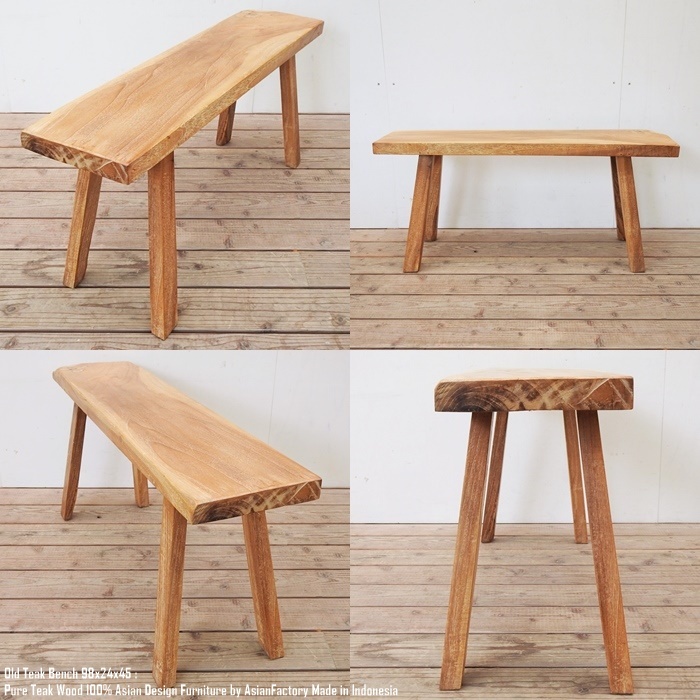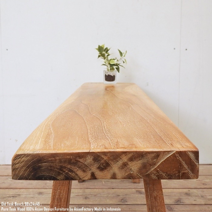 希少木材のオールドチーク材から作られたベンチ98cmです。