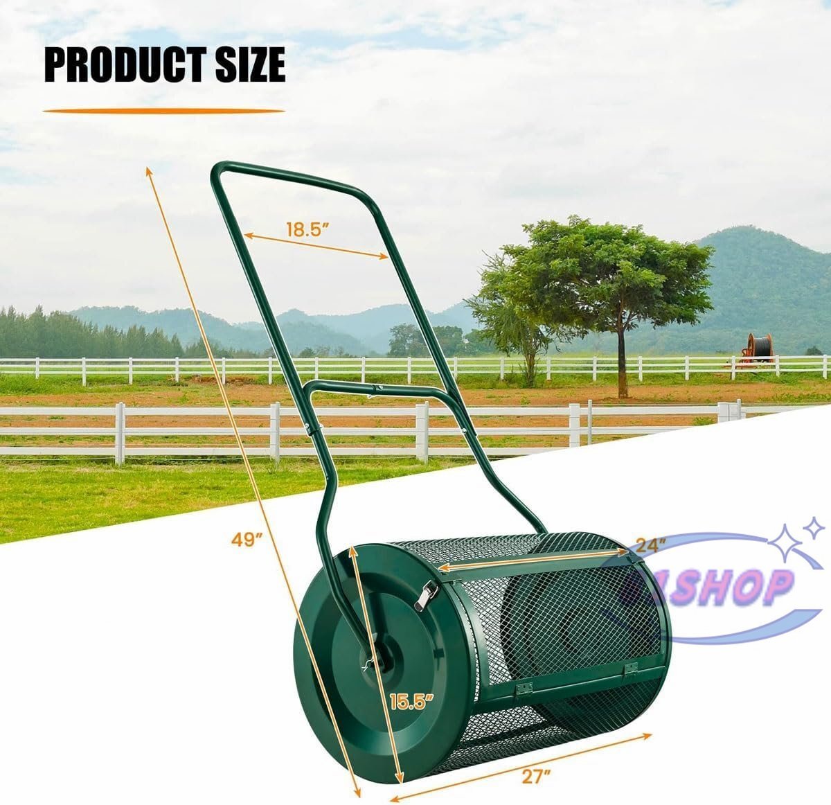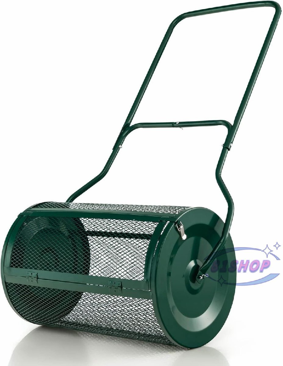 「81SHOP」堆肥散布機、ピートモス散布機、頑丈な金属メッシュプッシュ表土肥料散布機、芝生と庭用