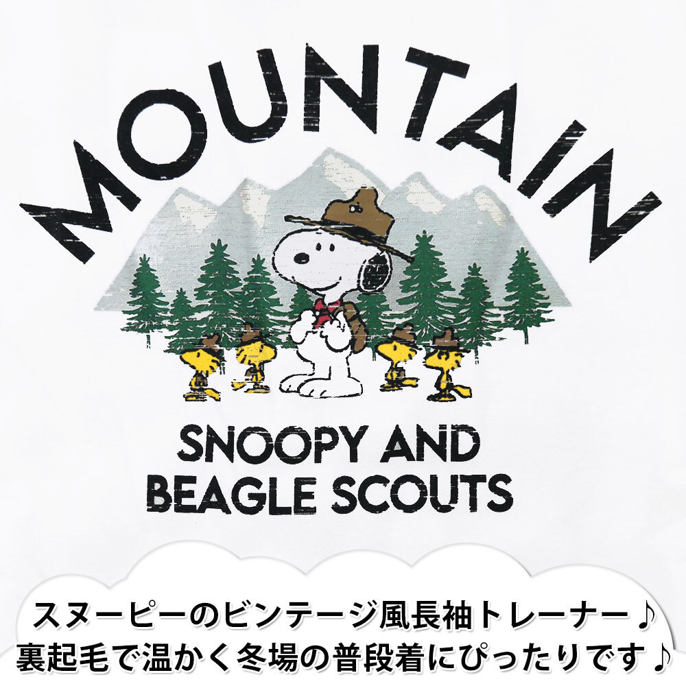 正規店仕入れの新品未使用品です 綿とポリエステル素材で、吸汗速乾に優れます スヌーピーのビンテージ風かすれ長袖トレーナー 裏起毛で温かく冬場の普段着にぴったりです |