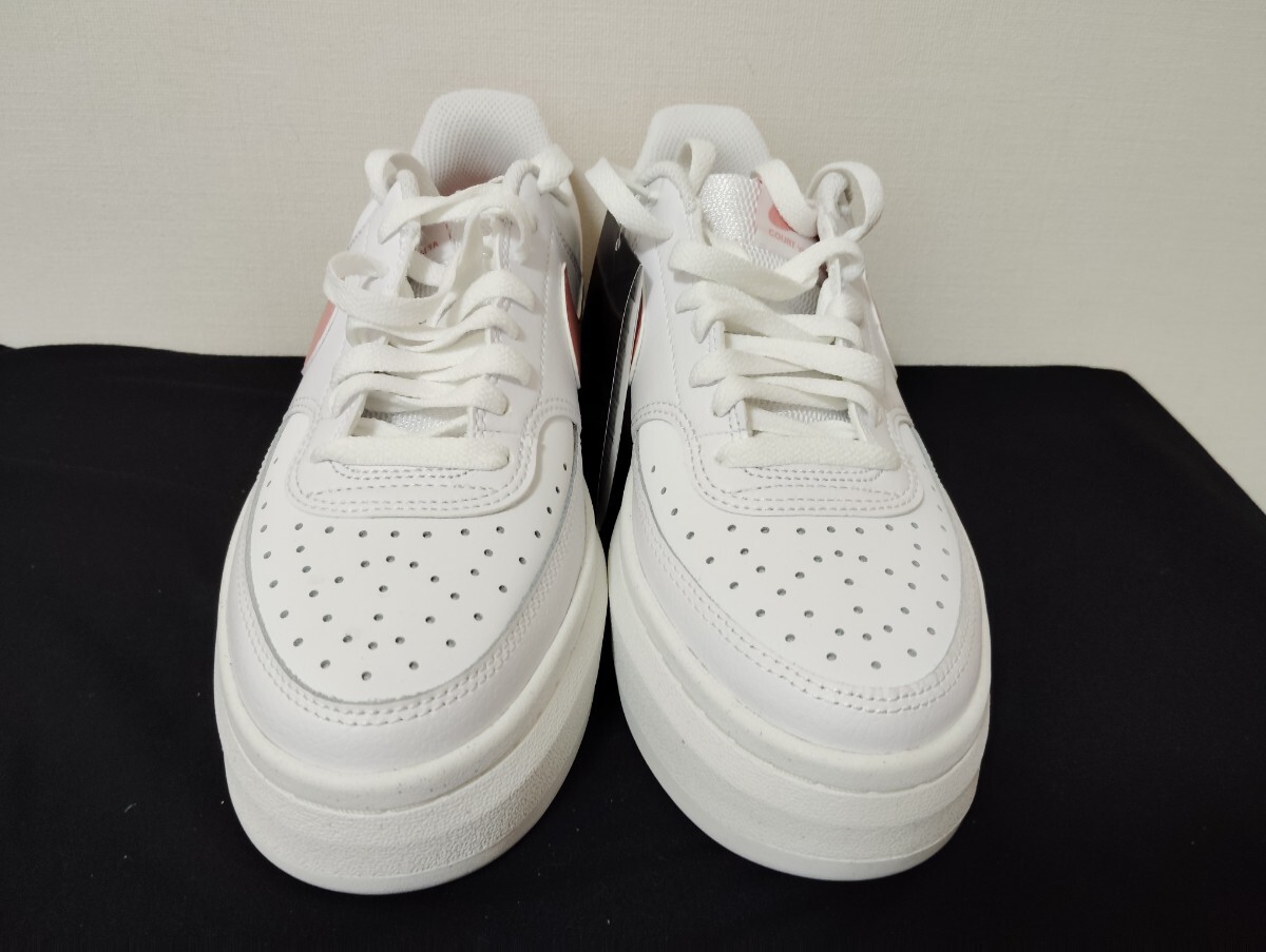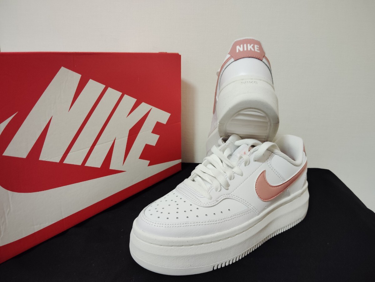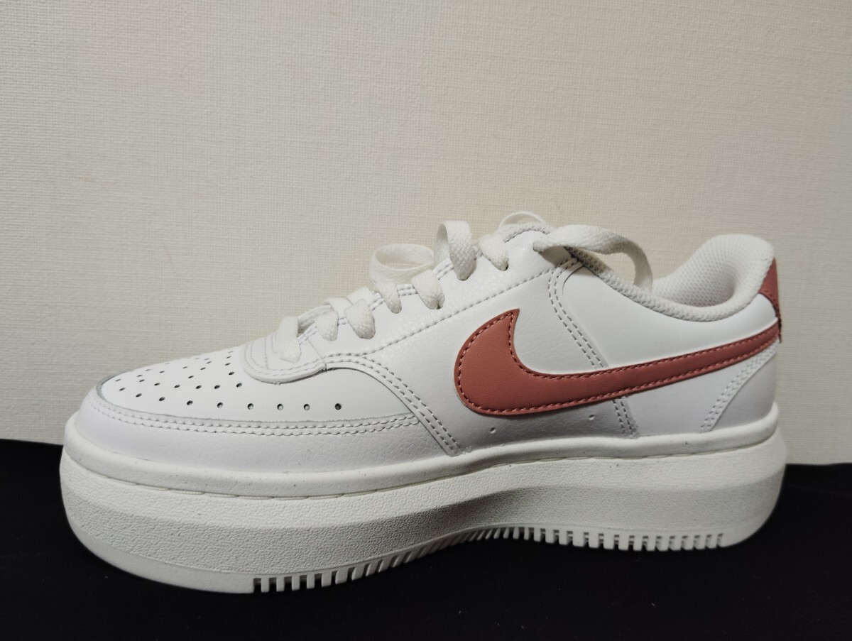 ●どこまでも現代的なスタイルのナイキ コート ビジョン アルタは、ストリートファッションとバスケットボールらしいデザインを融合したモデル。細部にまでこだわったアッパー、角度をつけたヒール、張りのあるレザー、キラキラと輝くゴールドのスウッシュロゴで、堂々とした人生をサポートします。さあ、輝かしい自分をアピールしよう。