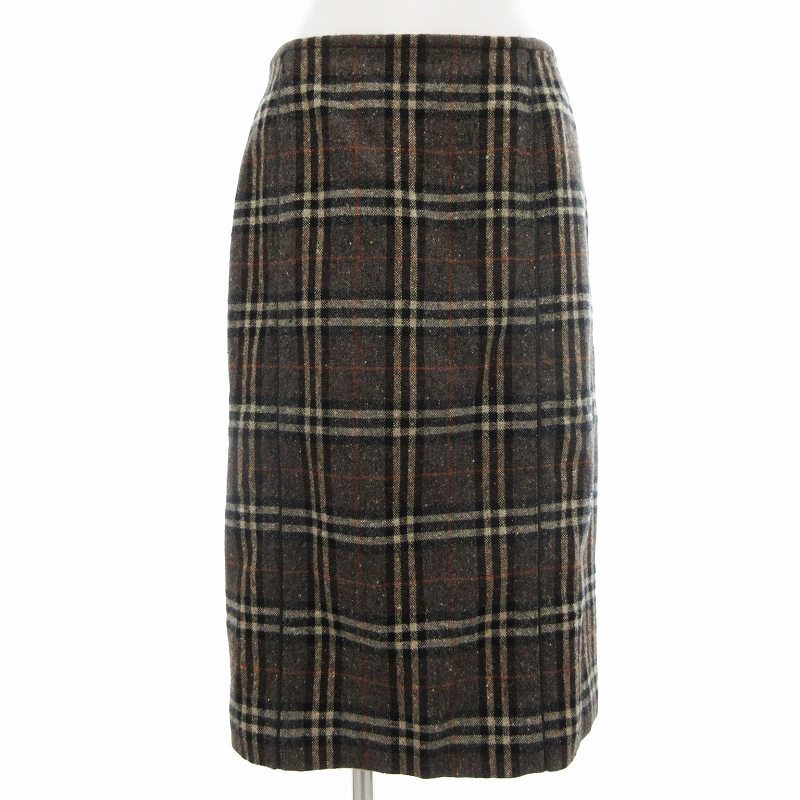 バーバリー ロンドン BURBERRY LONDON タイトスカート チェック アンゴラ混 カシミヤ混 ひざ丈 42 グレー /FF ■GY14 レディース