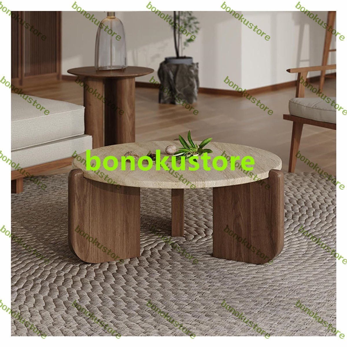 コーヒーテーブル センターテーブル 丸 円形 ローテーブル リビングテーブル リビングルーム用のモダンなコーヒーテーブル、木製ベース付きコーヒーテーブル、室内装飾、リビングルームや寝室に最適、組み立て簡単(Brown)