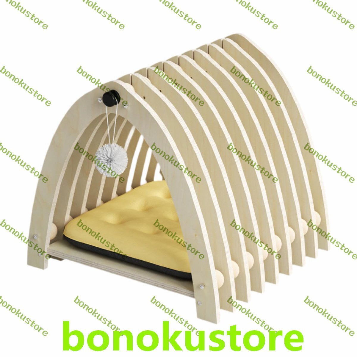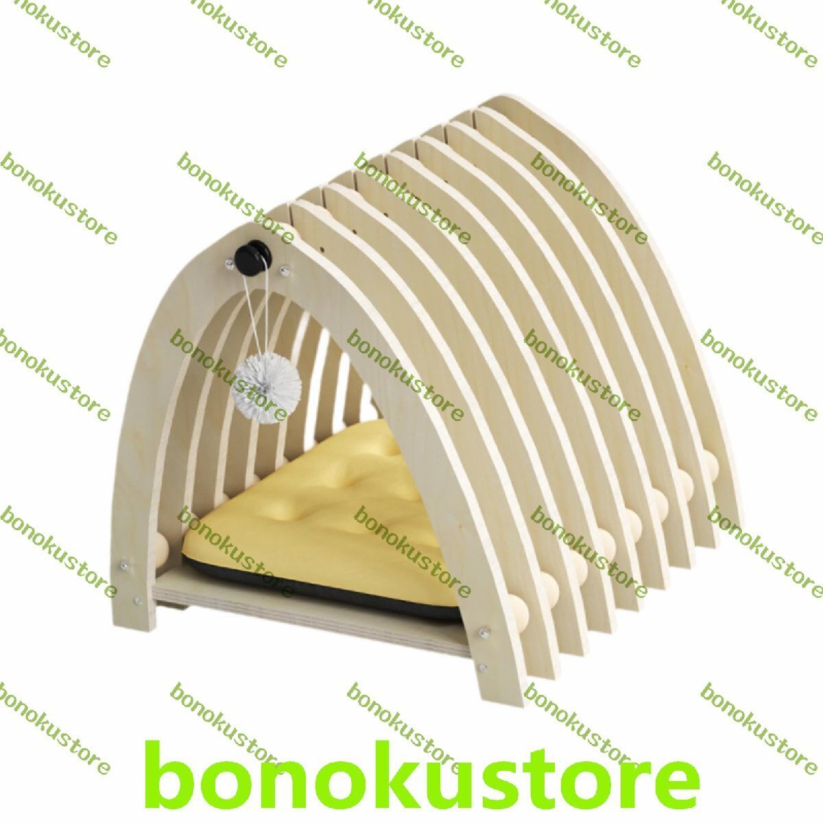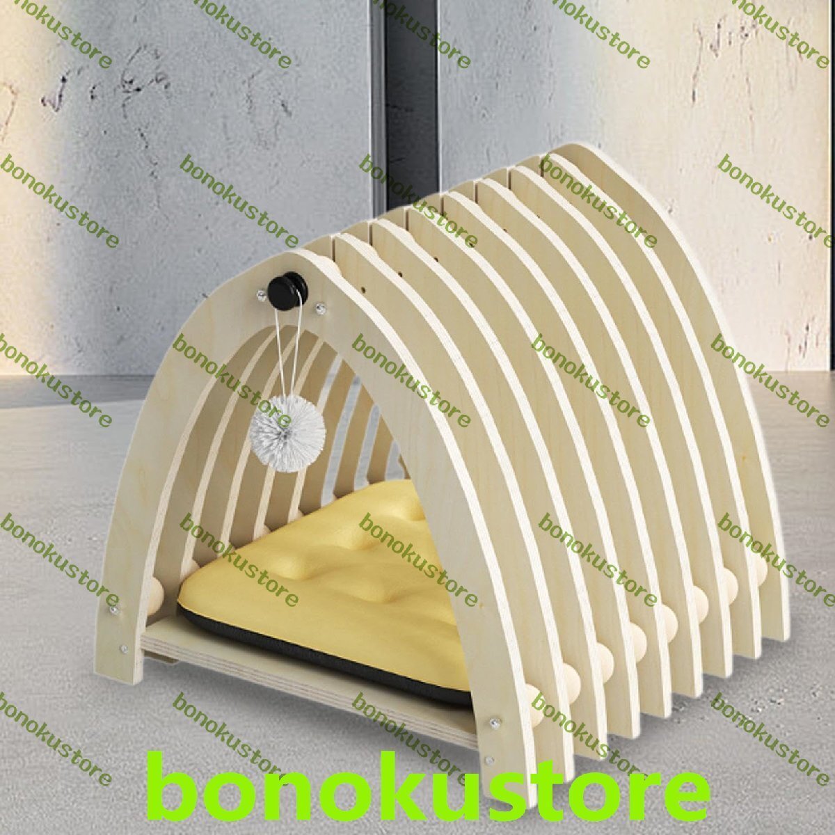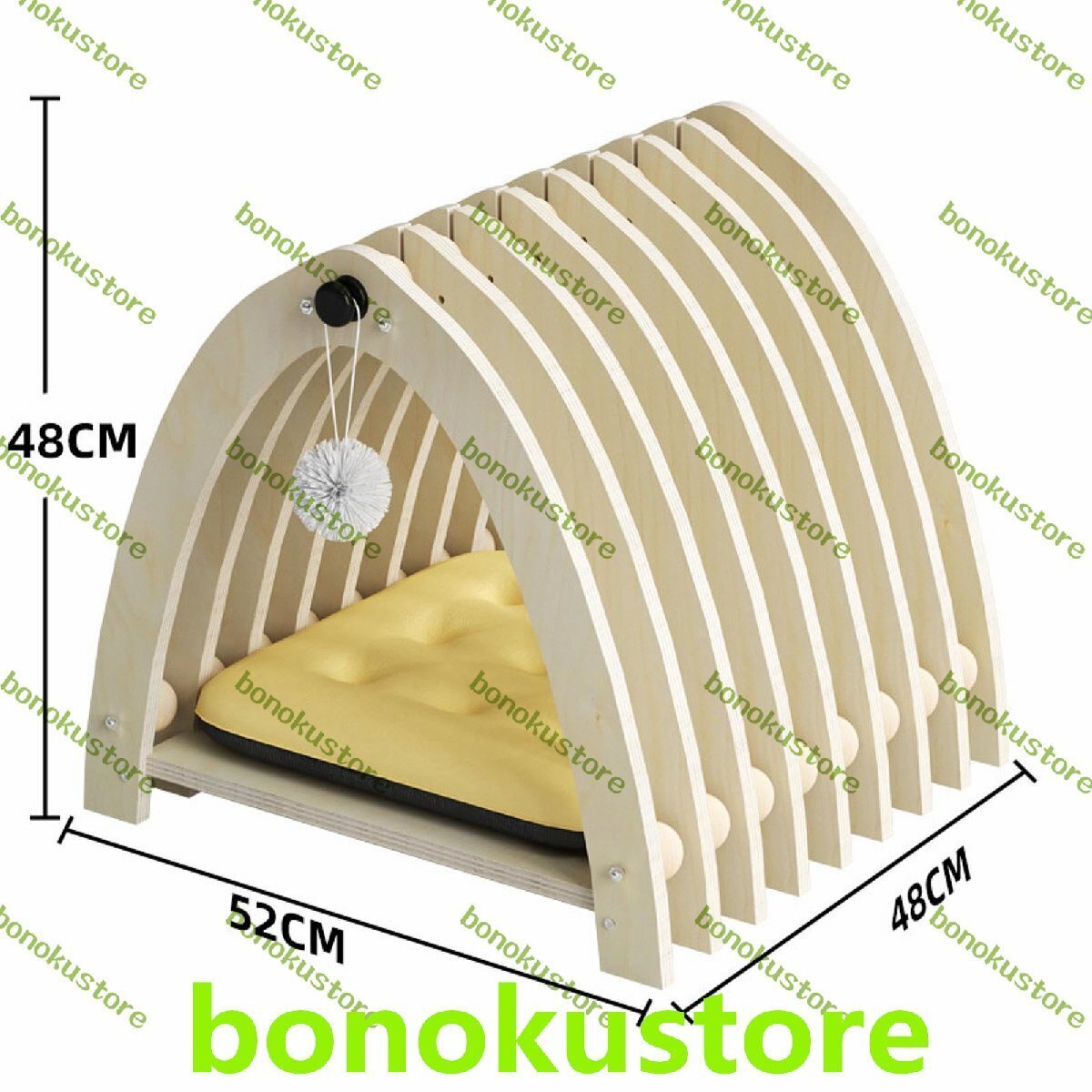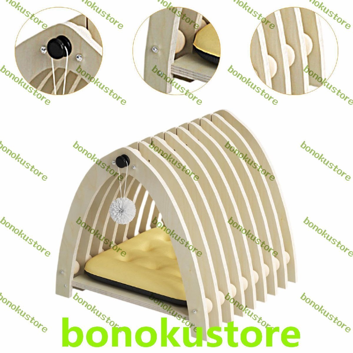 【耐久性】: 無垢材で作られたこの猫ハウスは、ペットに頑丈で安全な構造を提供し、猫に快適な環境を提供します。