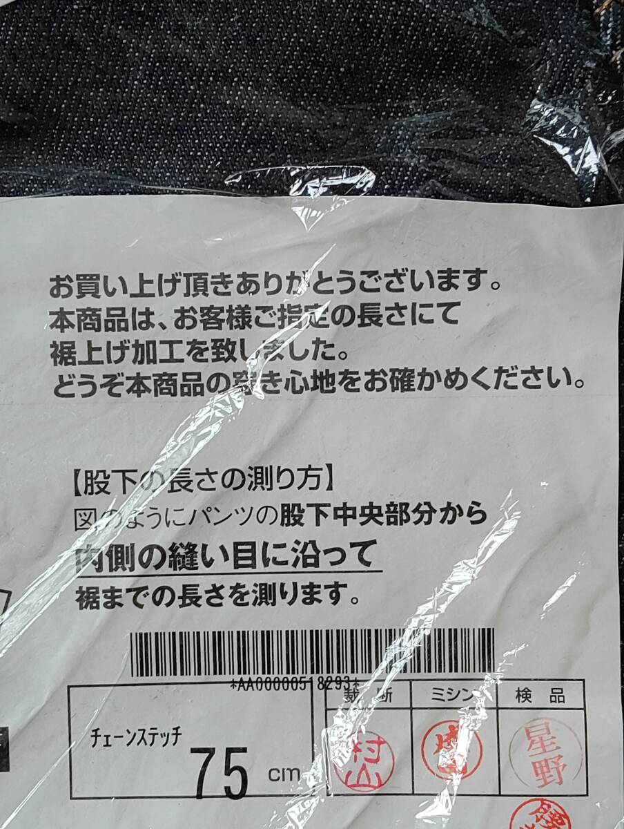 サイズはウエスト30 股下75cm チェーンステッチで仕上げてあります。
