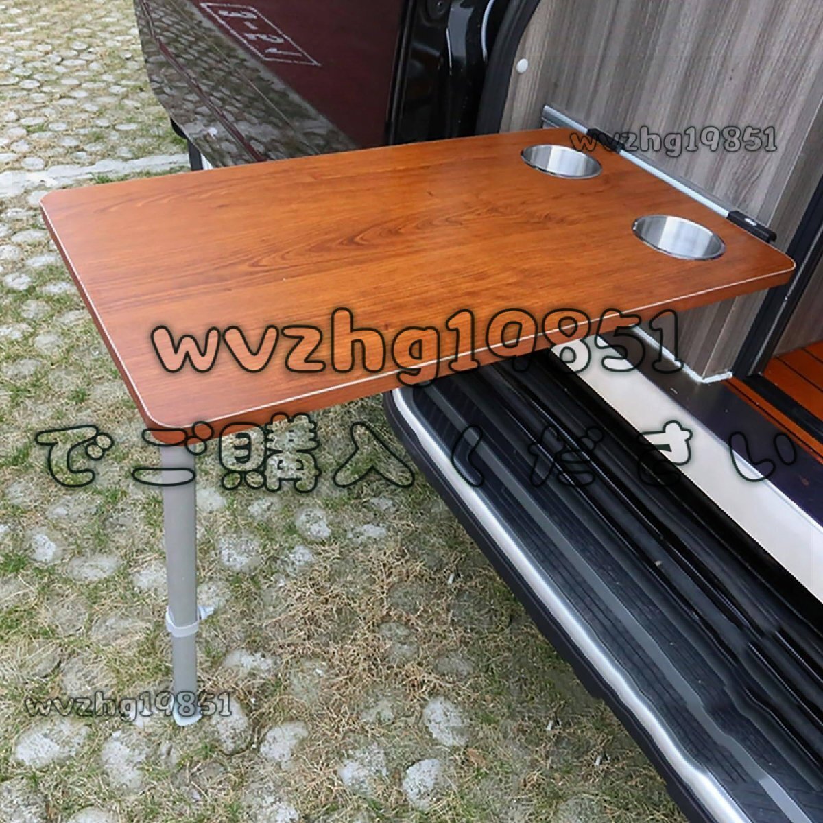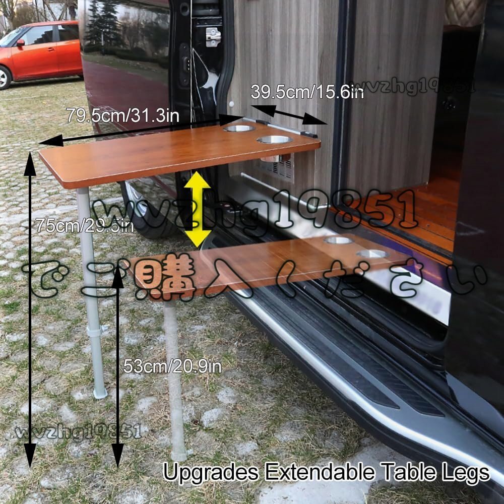 RVサイドハンギング折りたたみテーブル2カップスロット+伸縮テーブル脚、モーターホーム、キャンピングカーのための家具のインテリア Brown