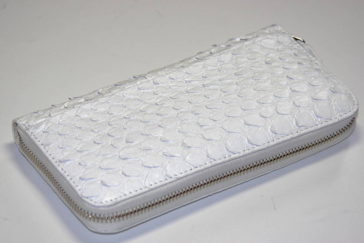 【ブラックフライデータイムセール】【送料込み】【限定】【新品】【税込み】本パイソン☆大判ウロコ☆シングルラウンドロングウォレットWH