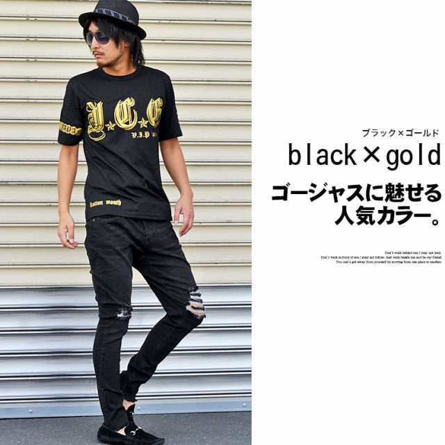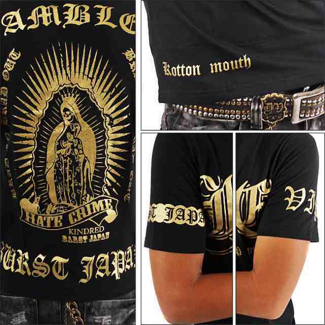 BURST JAPAN  I.C.Eプリント&スカルマリアプリント半袖Tシャツ 70533  新品 ブラック×ゴールド L