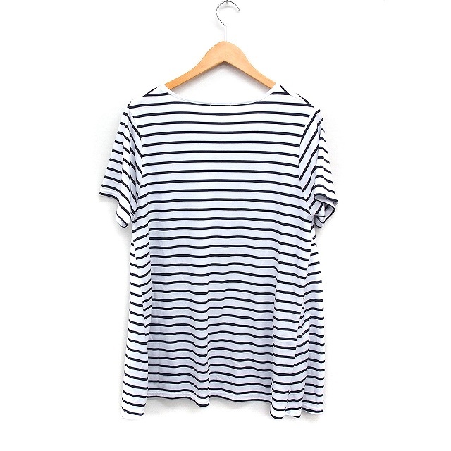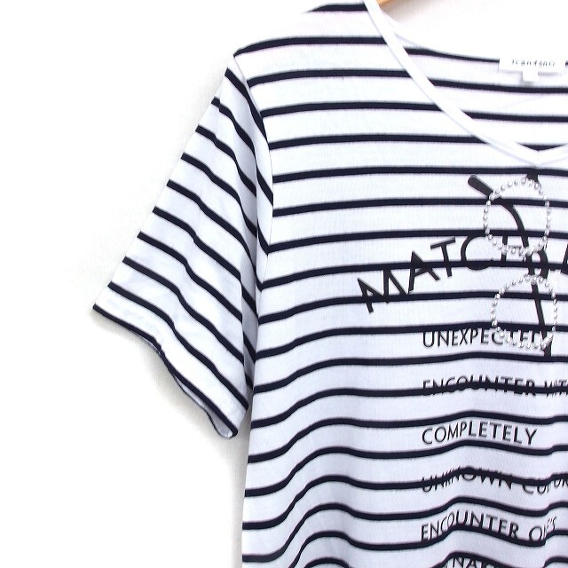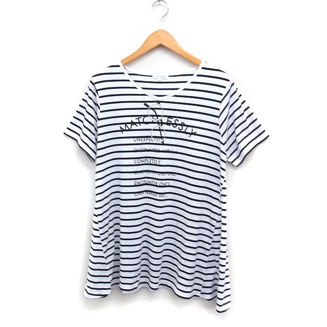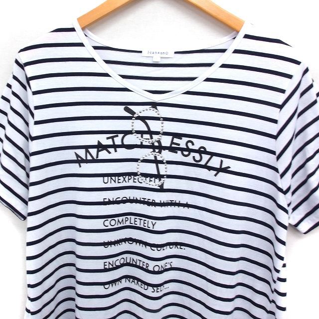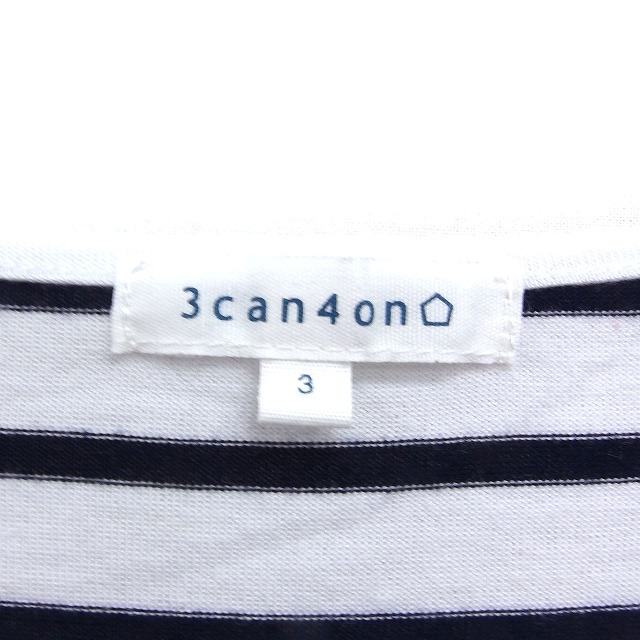 サンカンシオン 3can4on ボーダー ロゴプリント チュニック 半袖 Vネック フレア 3 ホワイト 白 /FT36 レディース