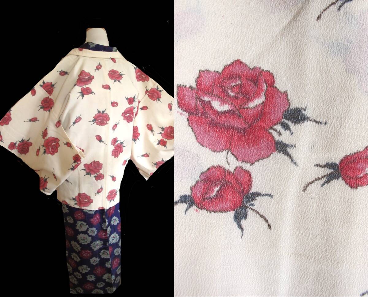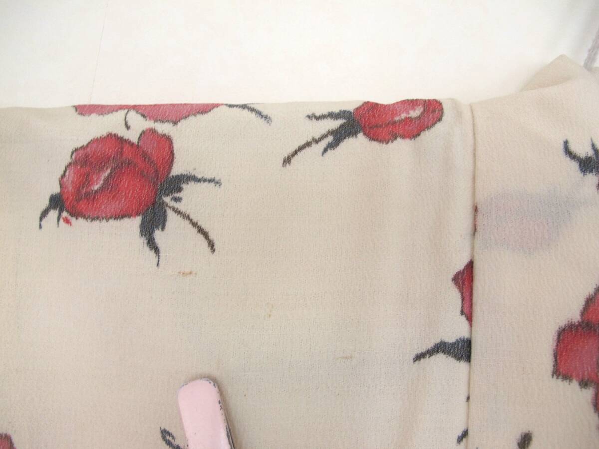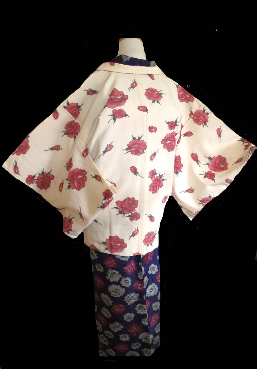 ピンクの薔薇が可愛いセミアンティークのお羽織です。 |