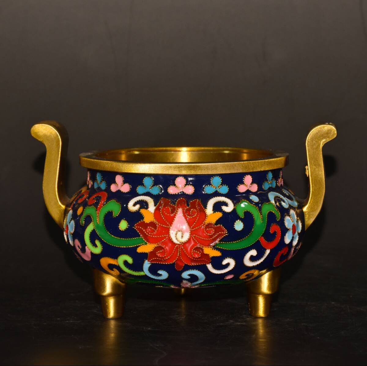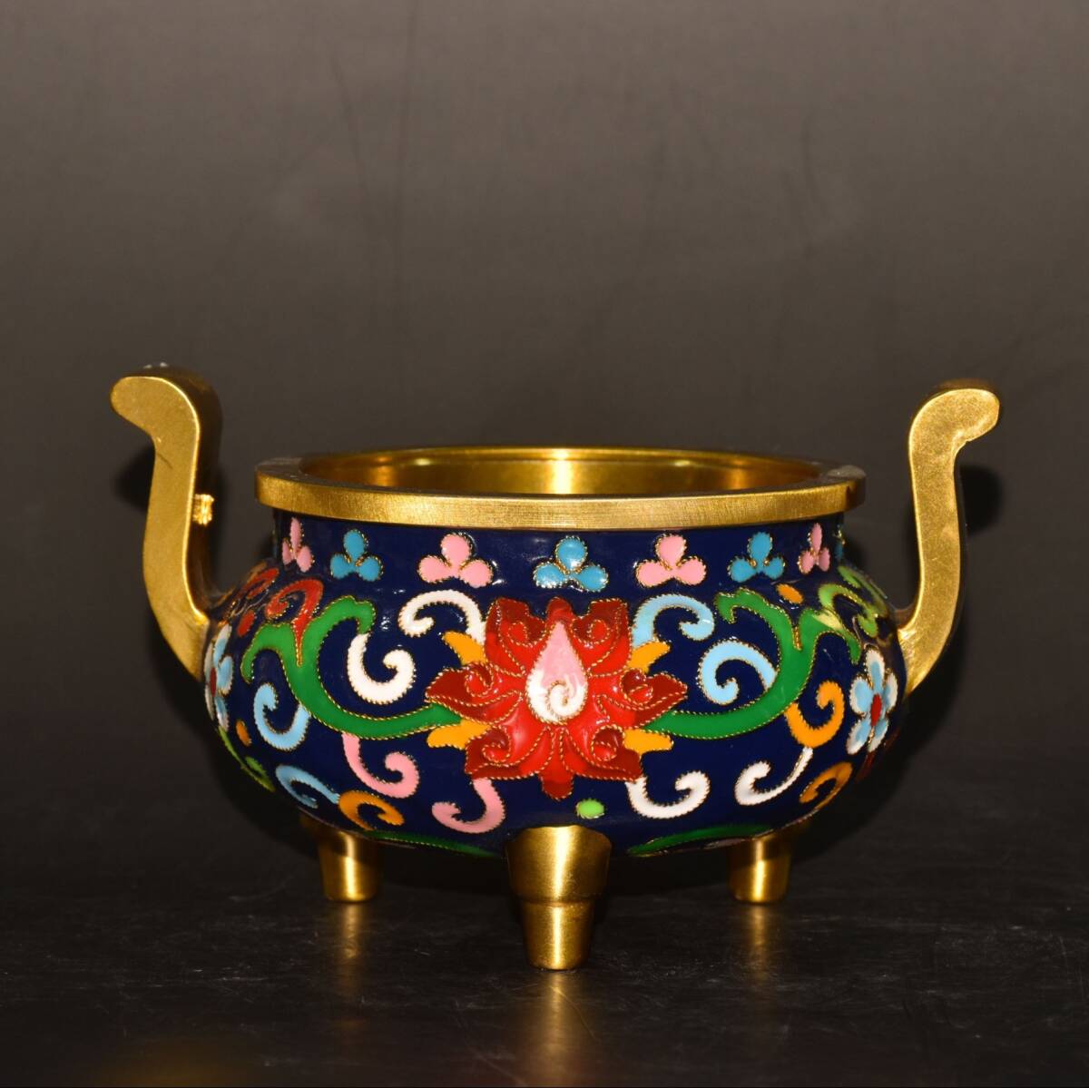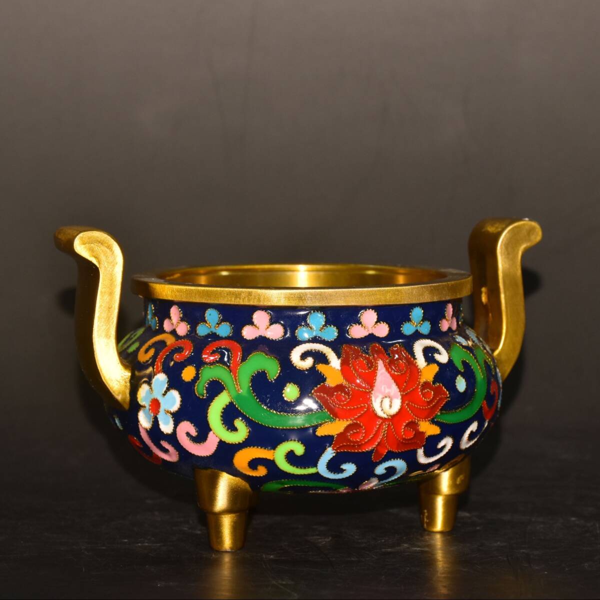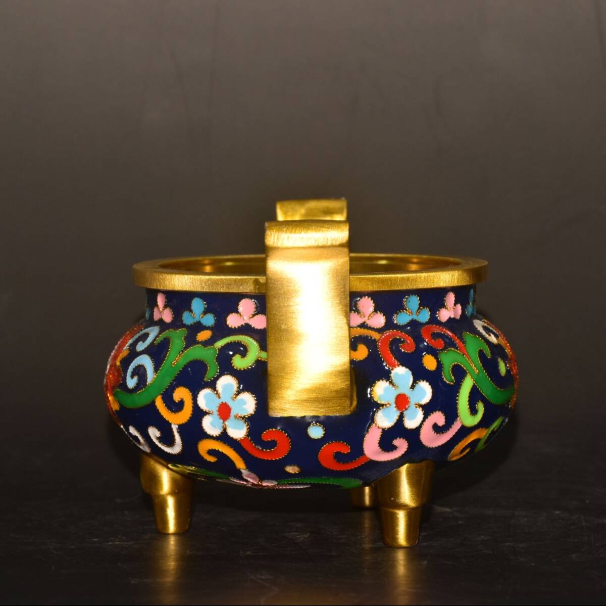 | 【蔵友館蔵品・銅製・景泰藍・琺瑯彩・塗金・雙耳・三足熏香炉】・希少珍品・置物・賞物・中国時代美術 |