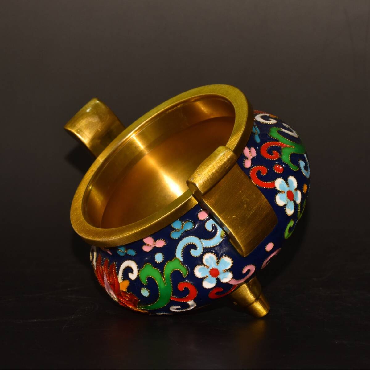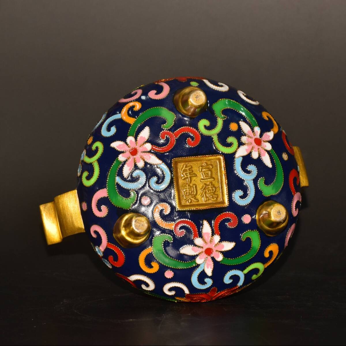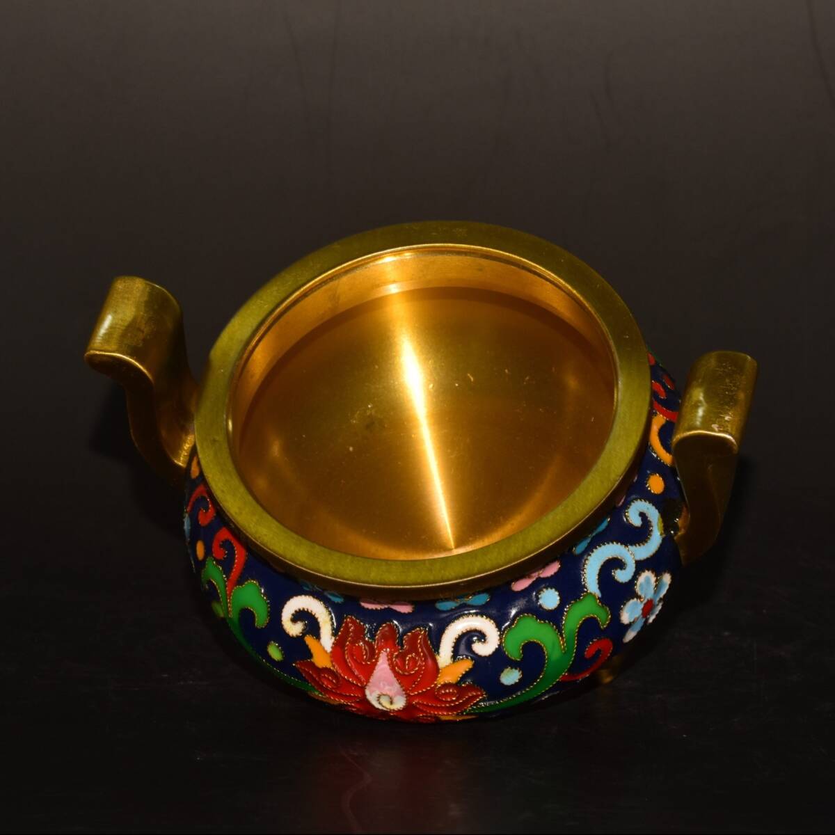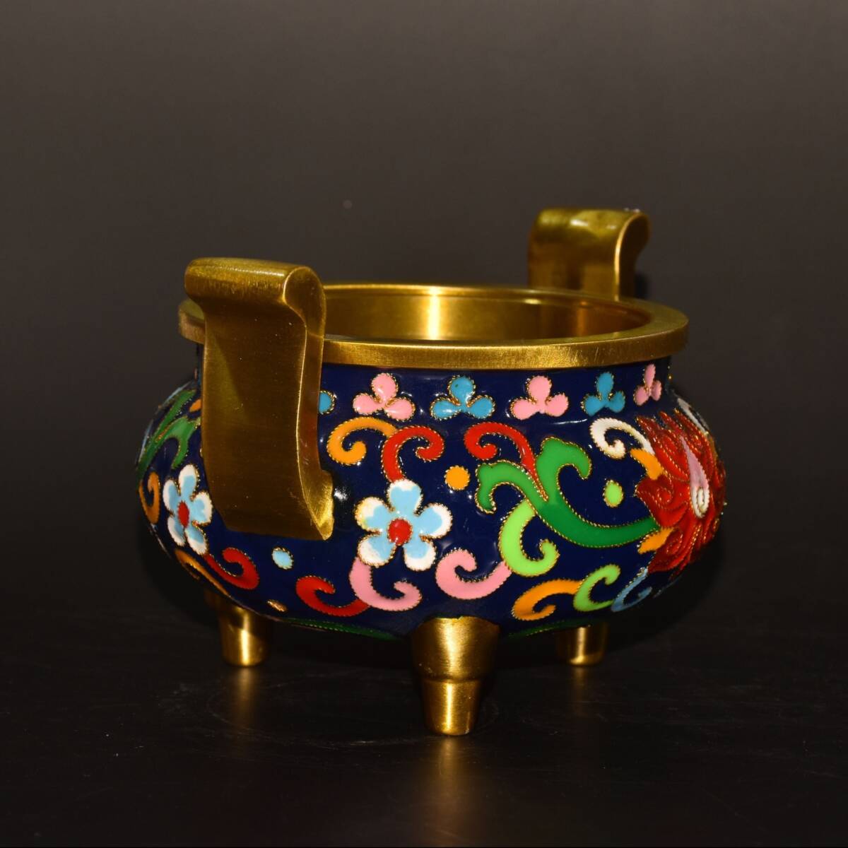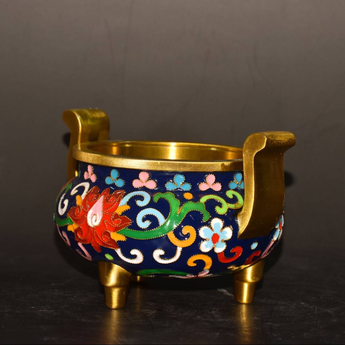 | 【蔵友館蔵品・銅製・景泰藍・琺瑯彩・塗金・雙耳・三足熏香炉】・希少珍品・置物・賞物・中国時代美術 |