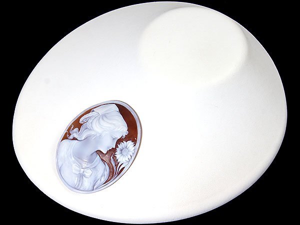 美しい女性と花を繊細に彫刻で演出した、素晴らしい高級シェルカメオルースです!