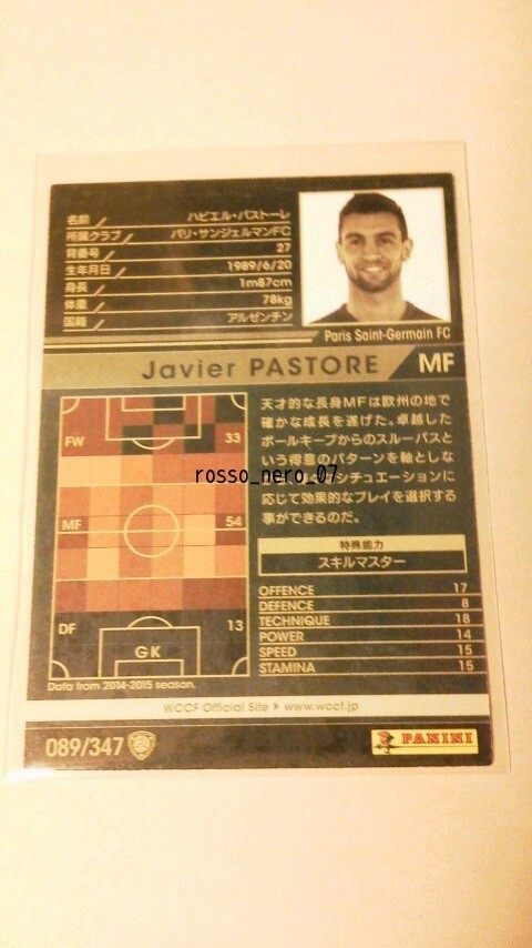 ☆WCCF2015-2016☆15-16☆089☆黒☆ハビエル・パストーレ☆パリ・サンジェルマンFC☆Javier Pastore☆Paris Saint-Germain FC☆