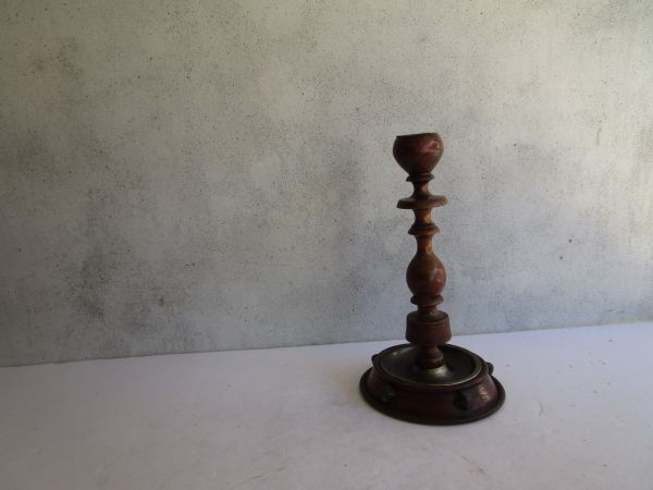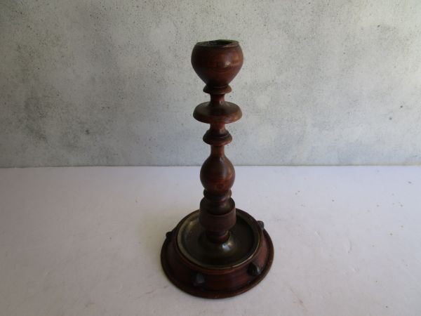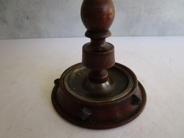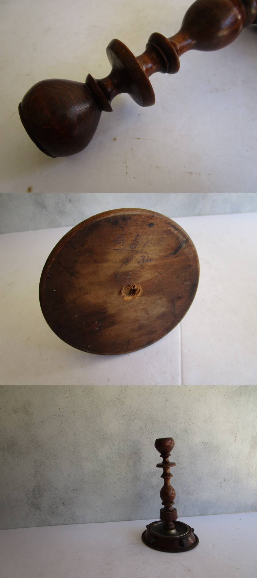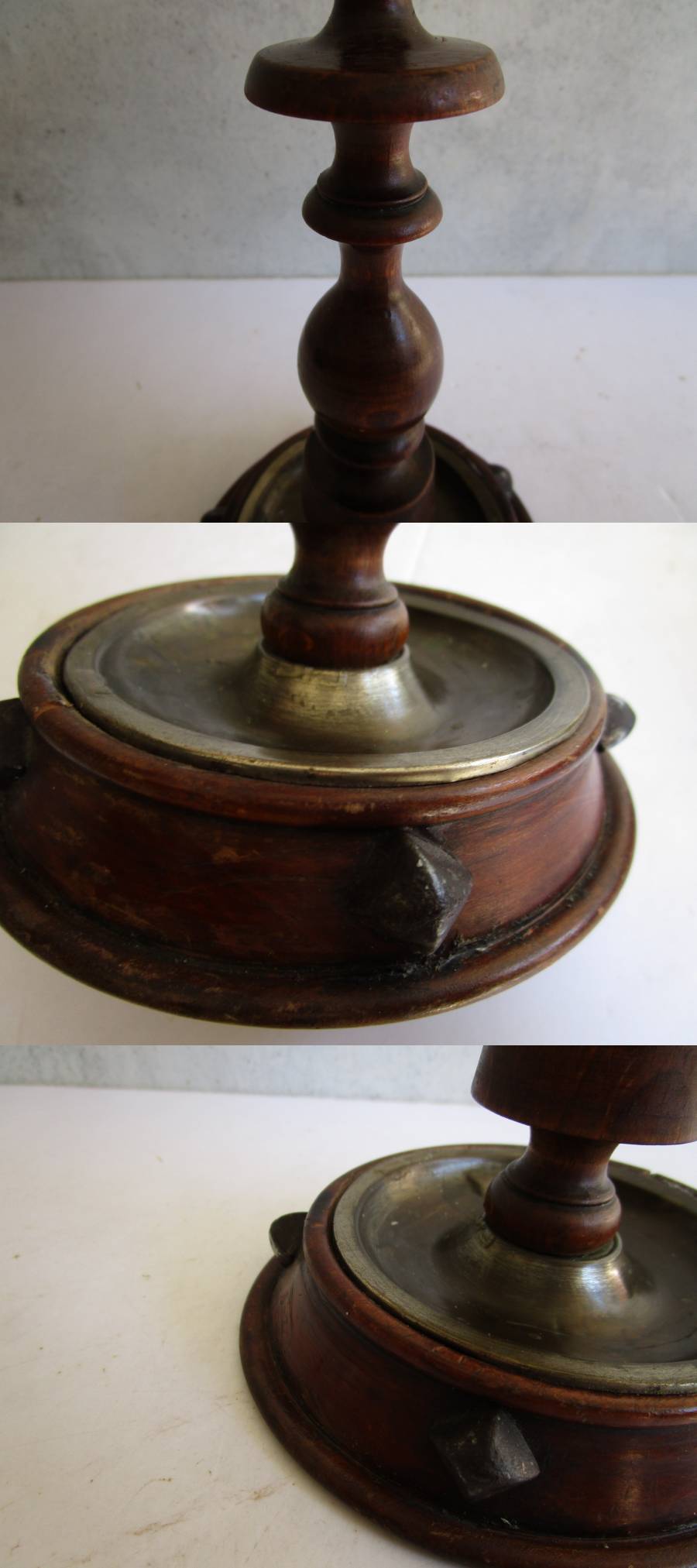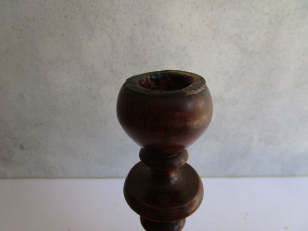 ■高さ:約22.5cm ■上面の径:約4cm ■キャンドル受けの径:約2cm ■底面の径:約12.3cm ■商品の状態:台座部分にクラック、多少のゆがみ、使用感、汚れはありますが、それ以外に大きな欠損のない状態です。天然木ならではの木目、節目等、詳細は掲載写真でご確認ください。