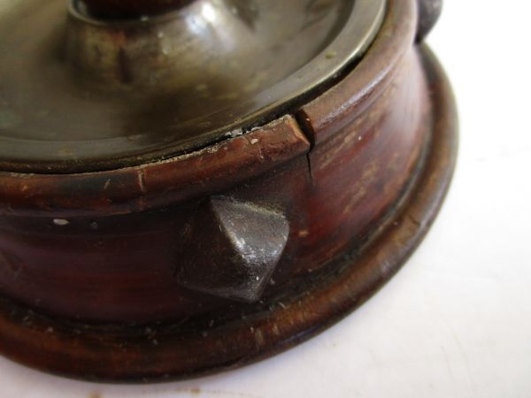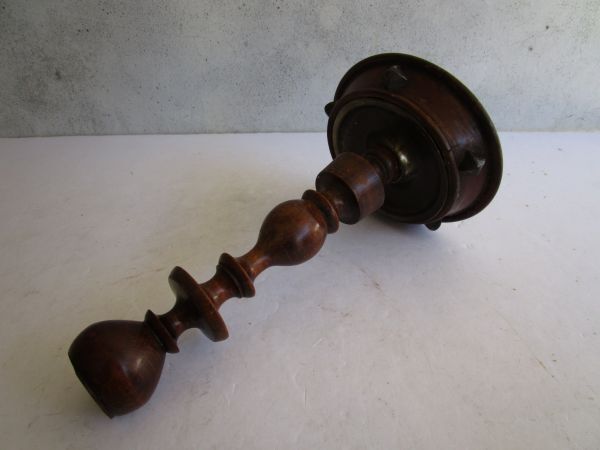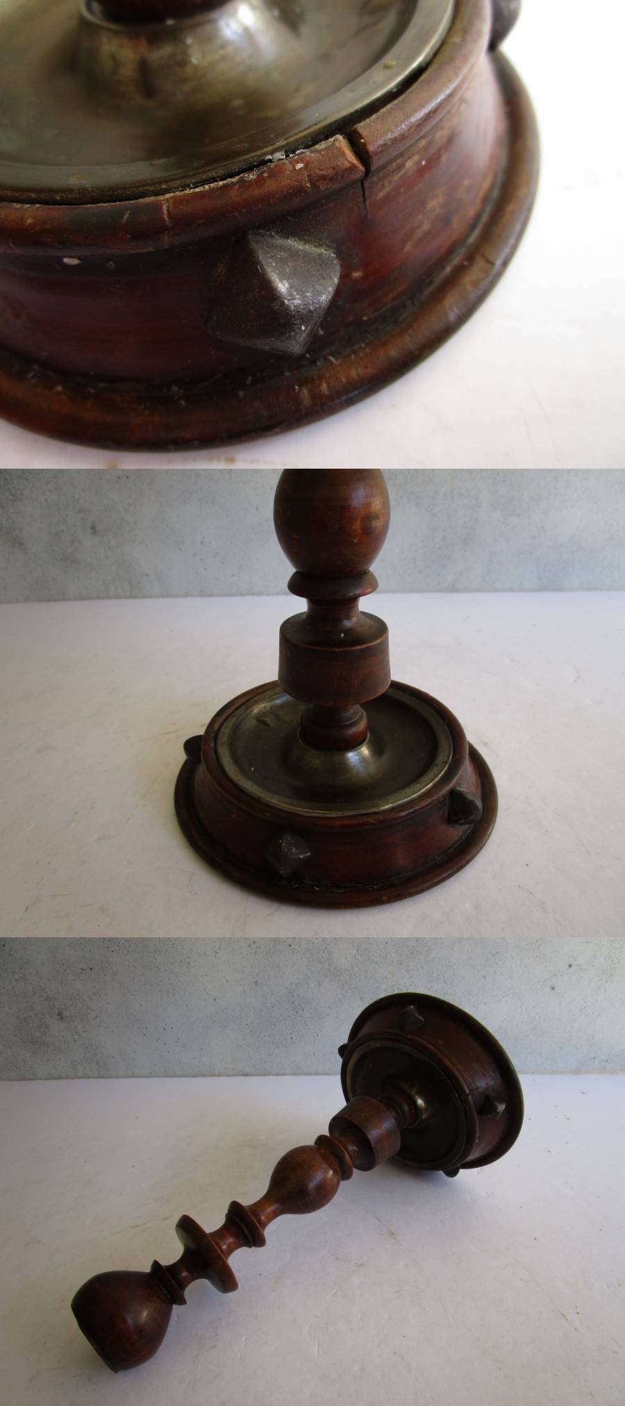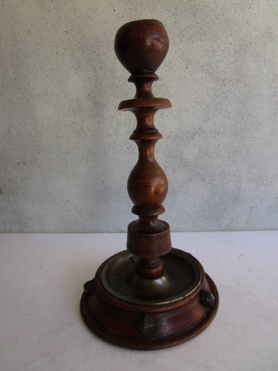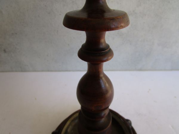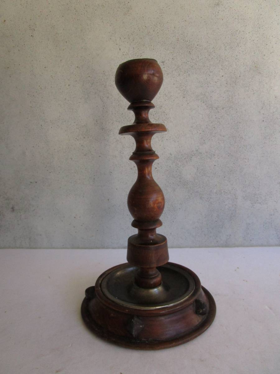 ■高さ:約22.5cm ■上面の径:約4cm ■キャンドル受けの径:約2cm ■底面の径:約12.3cm ■商品の状態:台座部分にクラック、多少のゆがみ、使用感、汚れはありますが、それ以外に大きな欠損のない状態です。天然木ならではの木目、節目等、詳細は掲載写真でご確認ください。