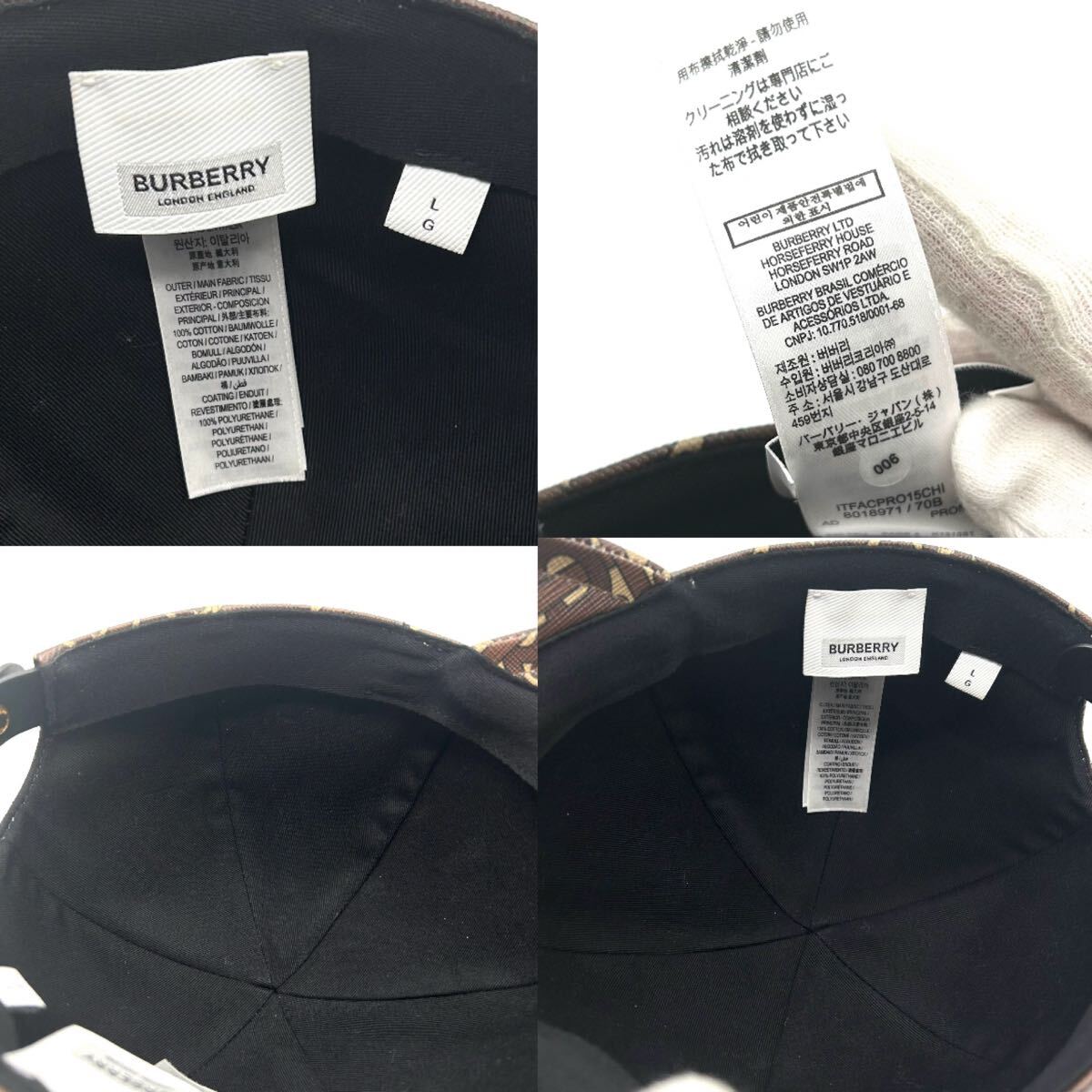 BURBERRY バーバリー キャップ 帽子 TB モノグラム 美品 ブラウン Lサイズ レディース メンズ ベースボールキャップ ブラック L
