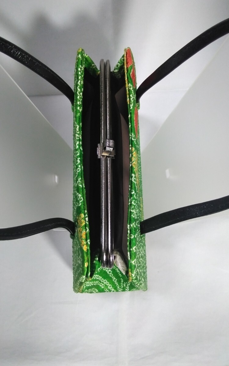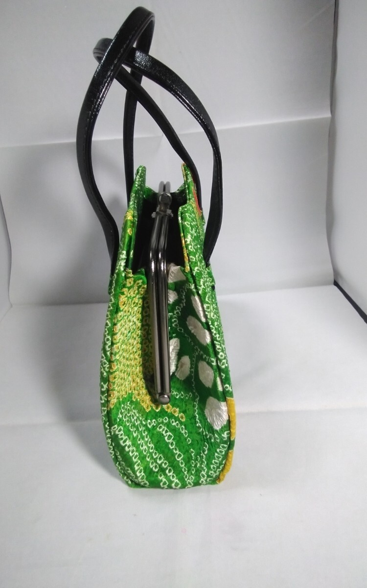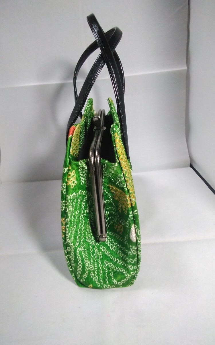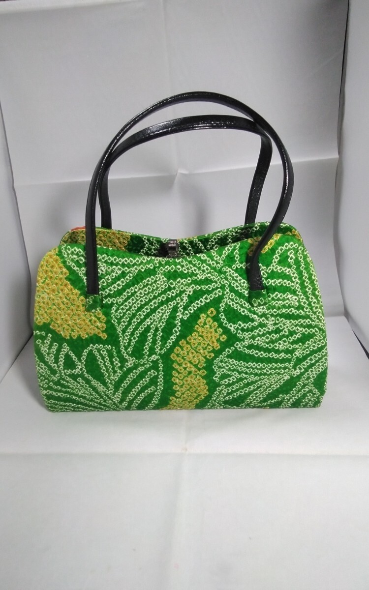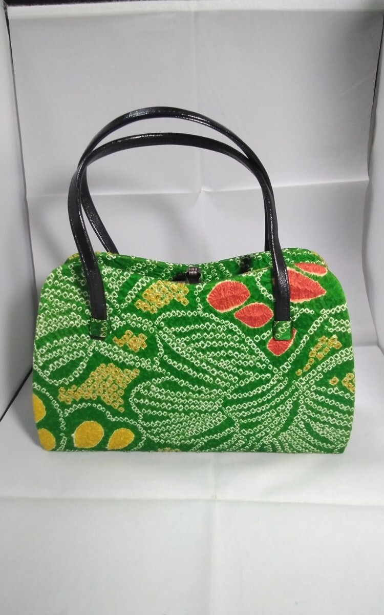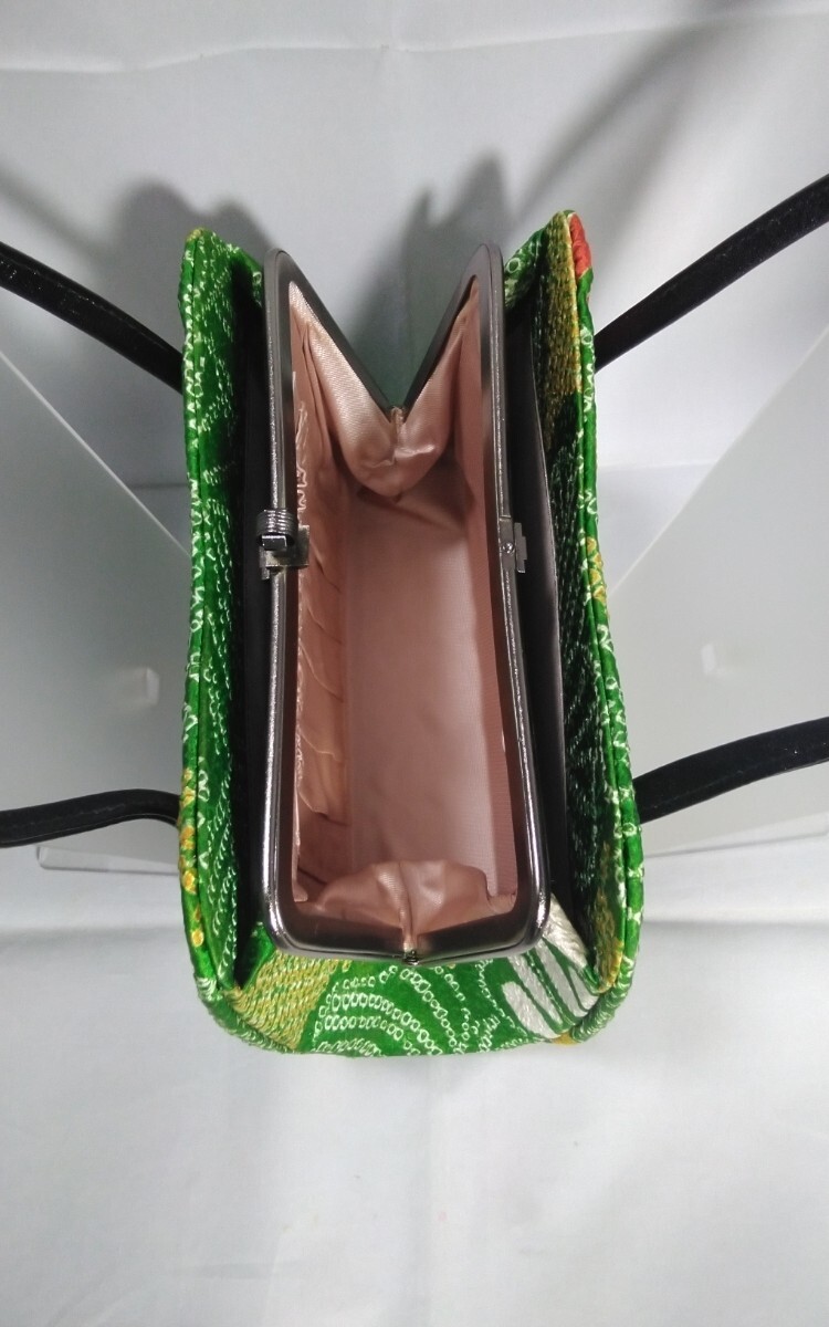 材質 正絹本絞り地 大きさ約17×27×8cm 持ち手(合成皮革)の長さ約38cm 口金留め 重量約380g 箱等はございませんのでご承知おきください