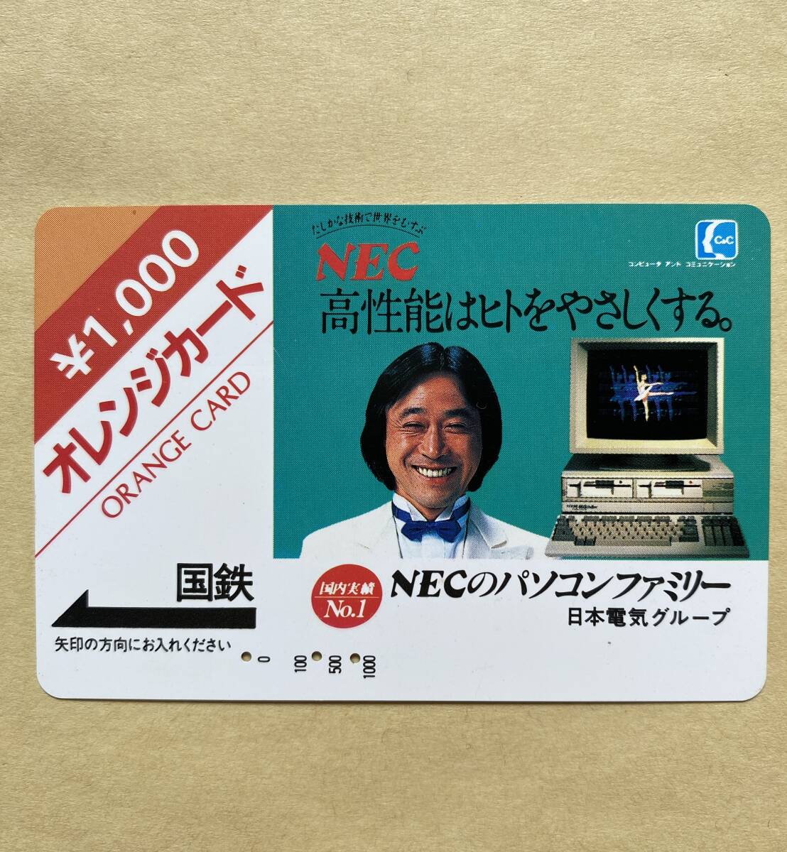 【使用済】 オレンジカード 国鉄 武田鉄矢 NECパソコンファミリー 日本電気グループ