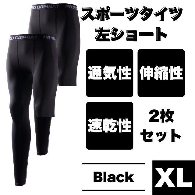 コンプレッションタイツ ショーツ メンズ スポーツタイツ ランニング トレーニング ウエア レギンス ジム ヨガ アンダーウェア 黒 セット XL 筋トレ 新品 快適 スパッツ 高性能 筋肉 ダンベル バスケ サッカー バレー ジョギング 短丈