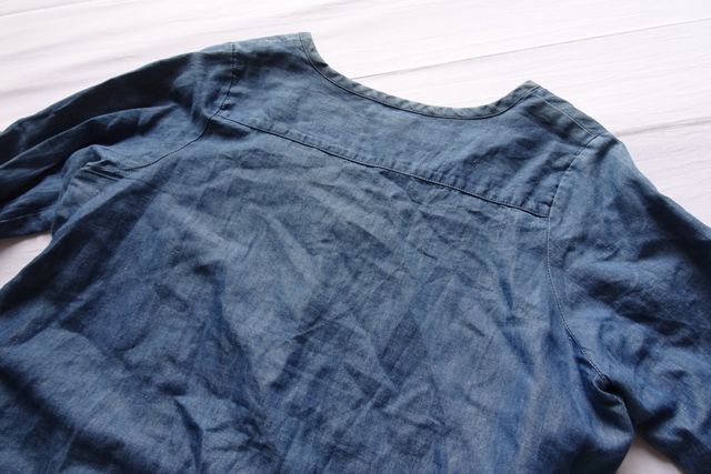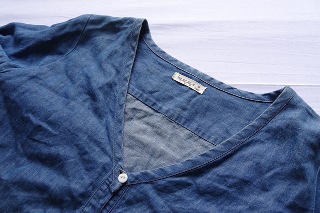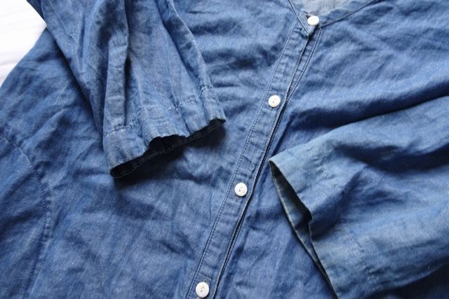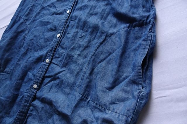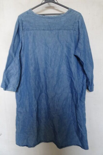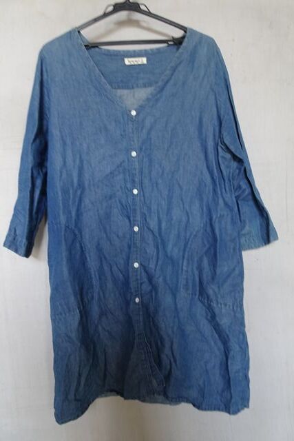 SM2/サマンサモスモス/7分袖チュニック/デニム風素材/Vネック/前ボタン/サイドポケット/インディゴブルー/Mサイズ(5/7R7)