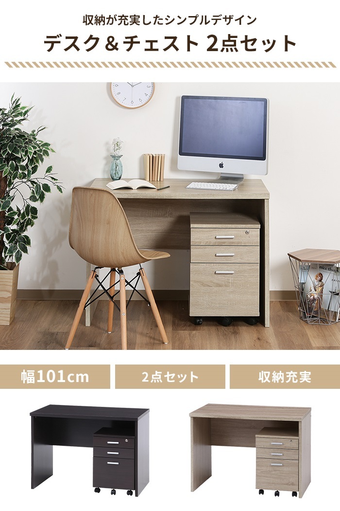| デスク 机 勉強机 2点セット 幅101 ワゴン シンプルデスク パソコンデスク コンパクトデスク 収納付き 省スペース 便利 二点セット 学習机 事務机 デスクセット キャスター付き 移動ラクラク 引き出し 収納 子供部屋 書斎 オフィス リビング 木目調 ナチュラル おしゃれ シンプル |