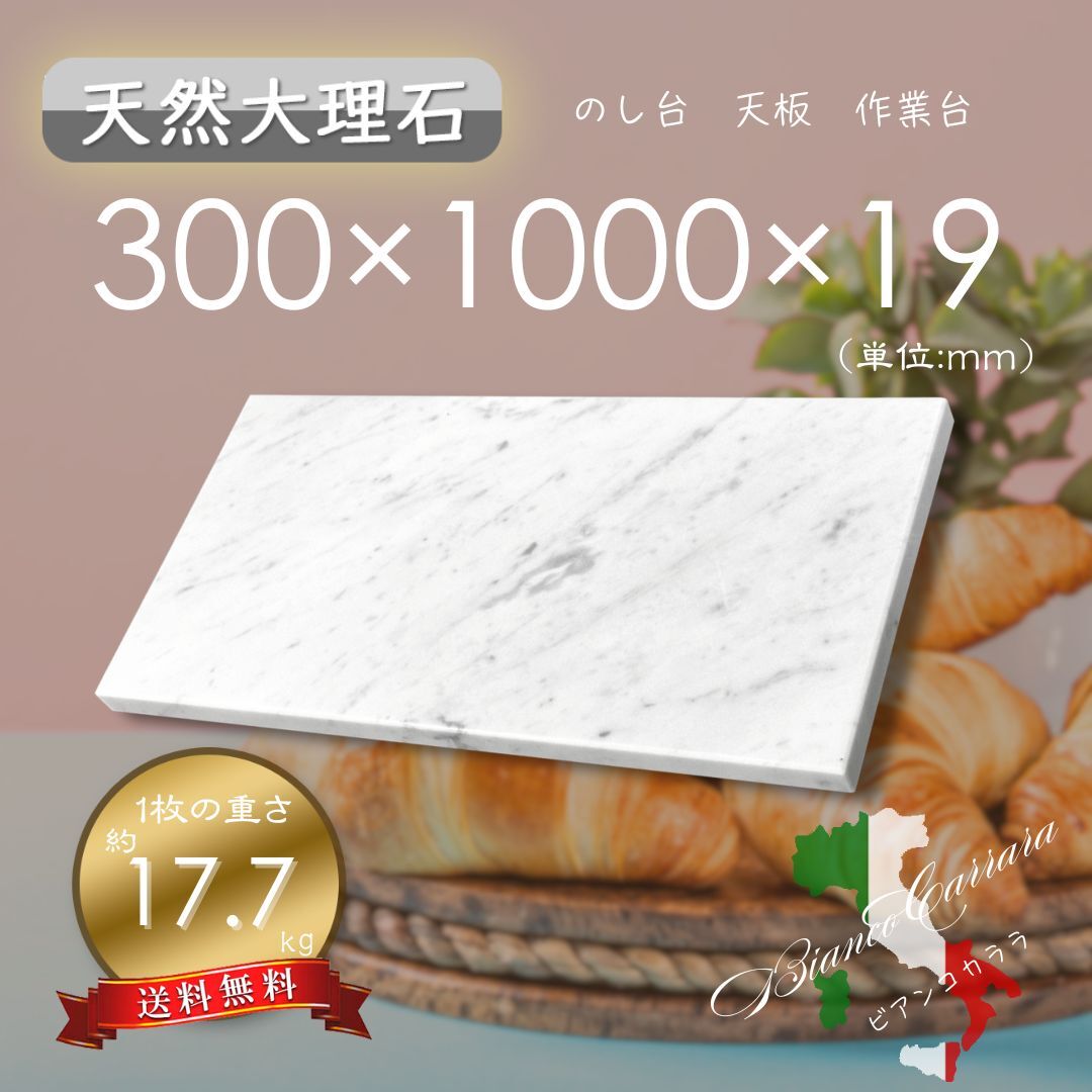 【超高級天然大理石】のし台 天板 作業台 白系 ビアンコカララ 300mm×1000mm×19mm 1面磨き 新品 即決 送料無料