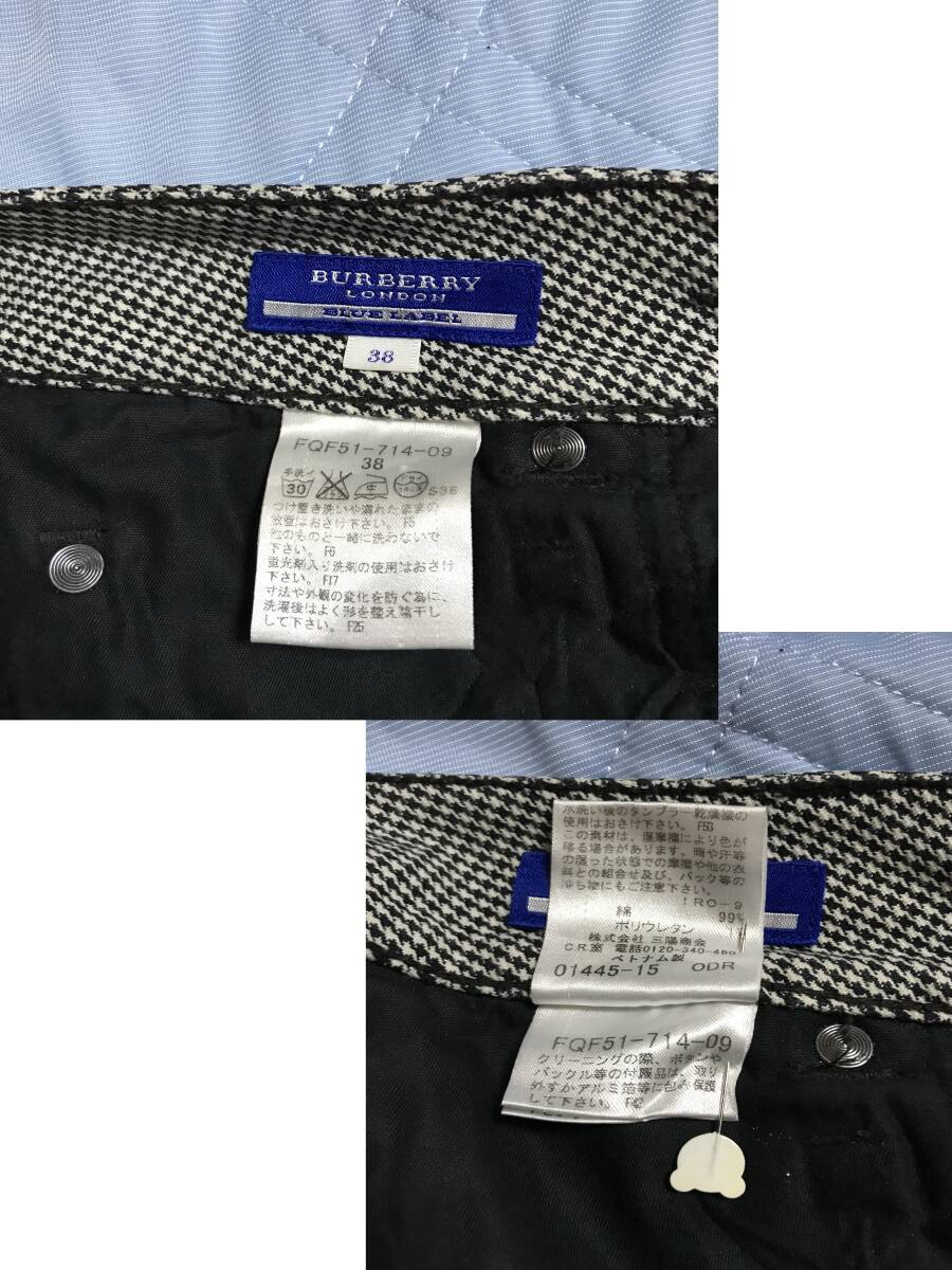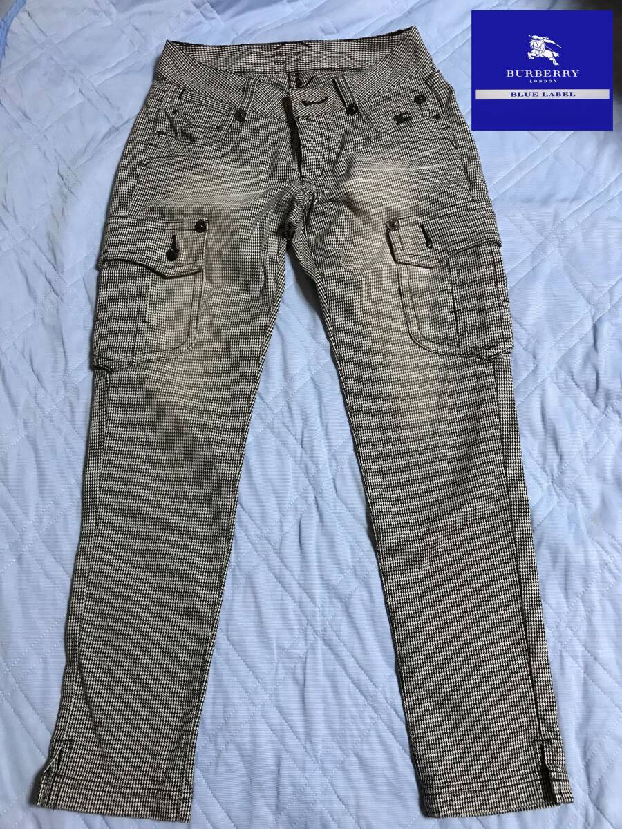バーバリーブルーレーベル 黒白細かな格子柄のカーゴ風パンツ  38   b82